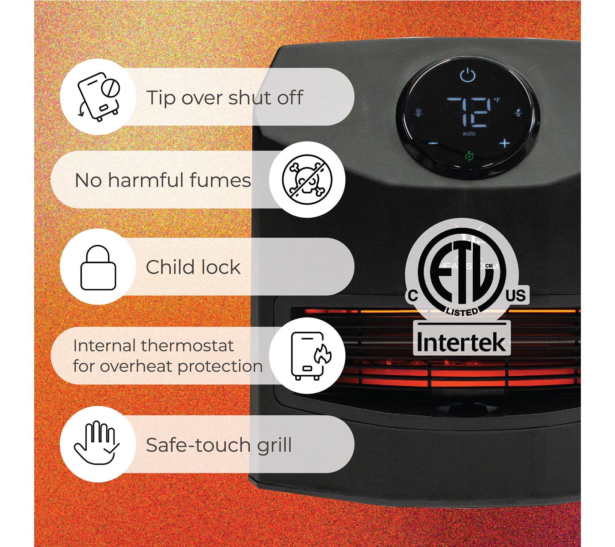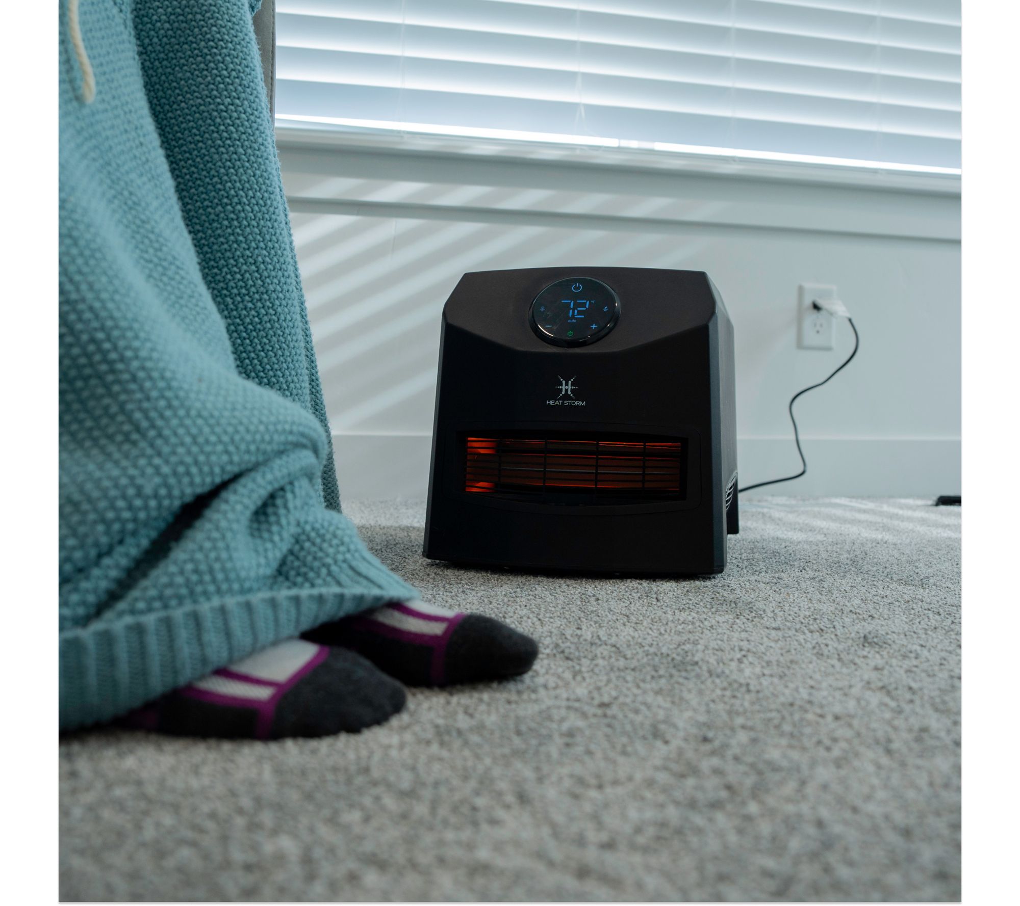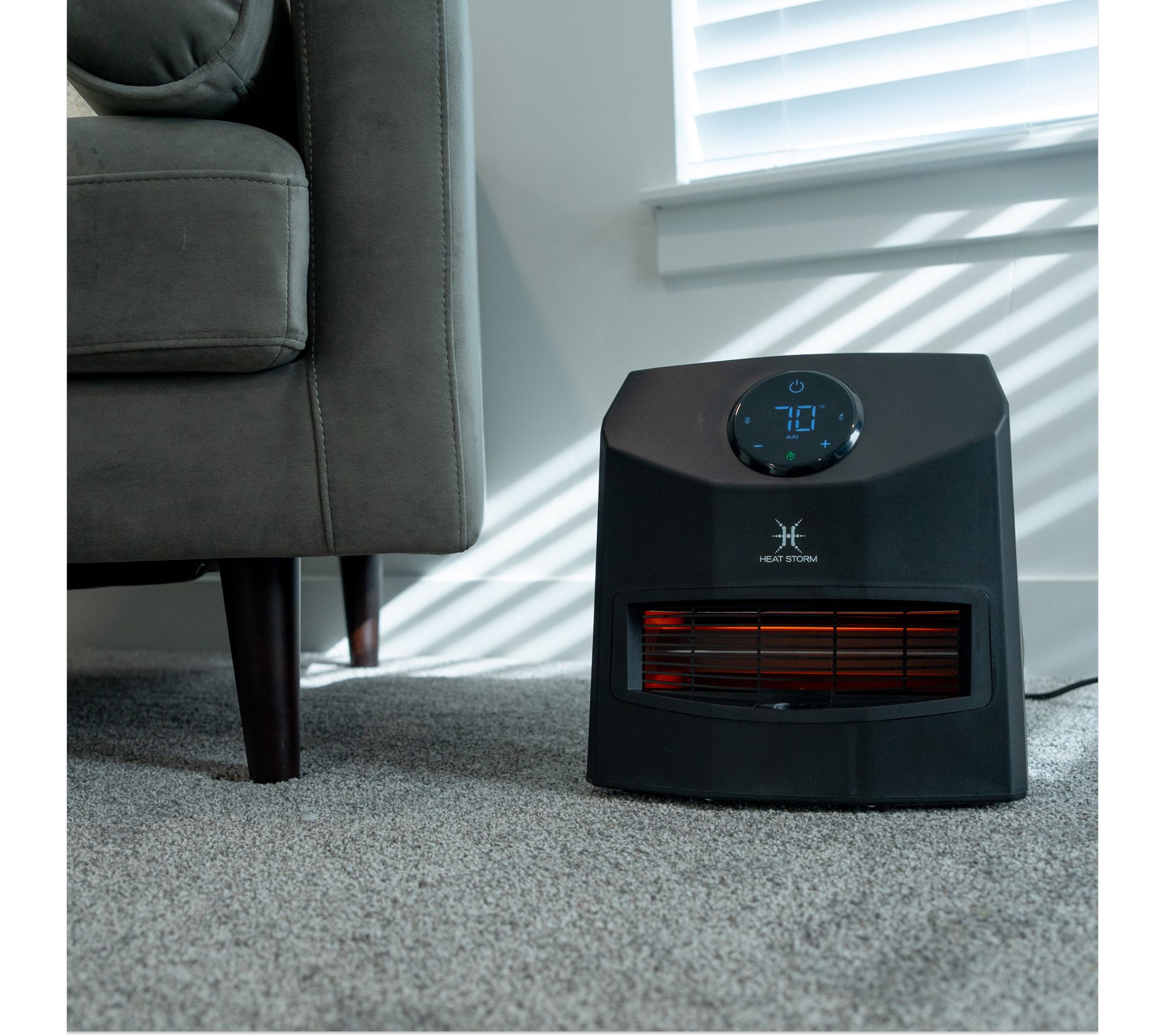 Stay cozy during chilly evenings with the Mojave infrared space heater, designed to deliver warmth where you need it most. Effortlessly portable at just 10 lbs, this heater features a convenient carrying handle, touch screen controls, and multiple power modes for customizable comfort. An array of safety options and a quiet, adjustable screen make it ideal for bedrooms, offices, or living spaces. From Heat Storm.
