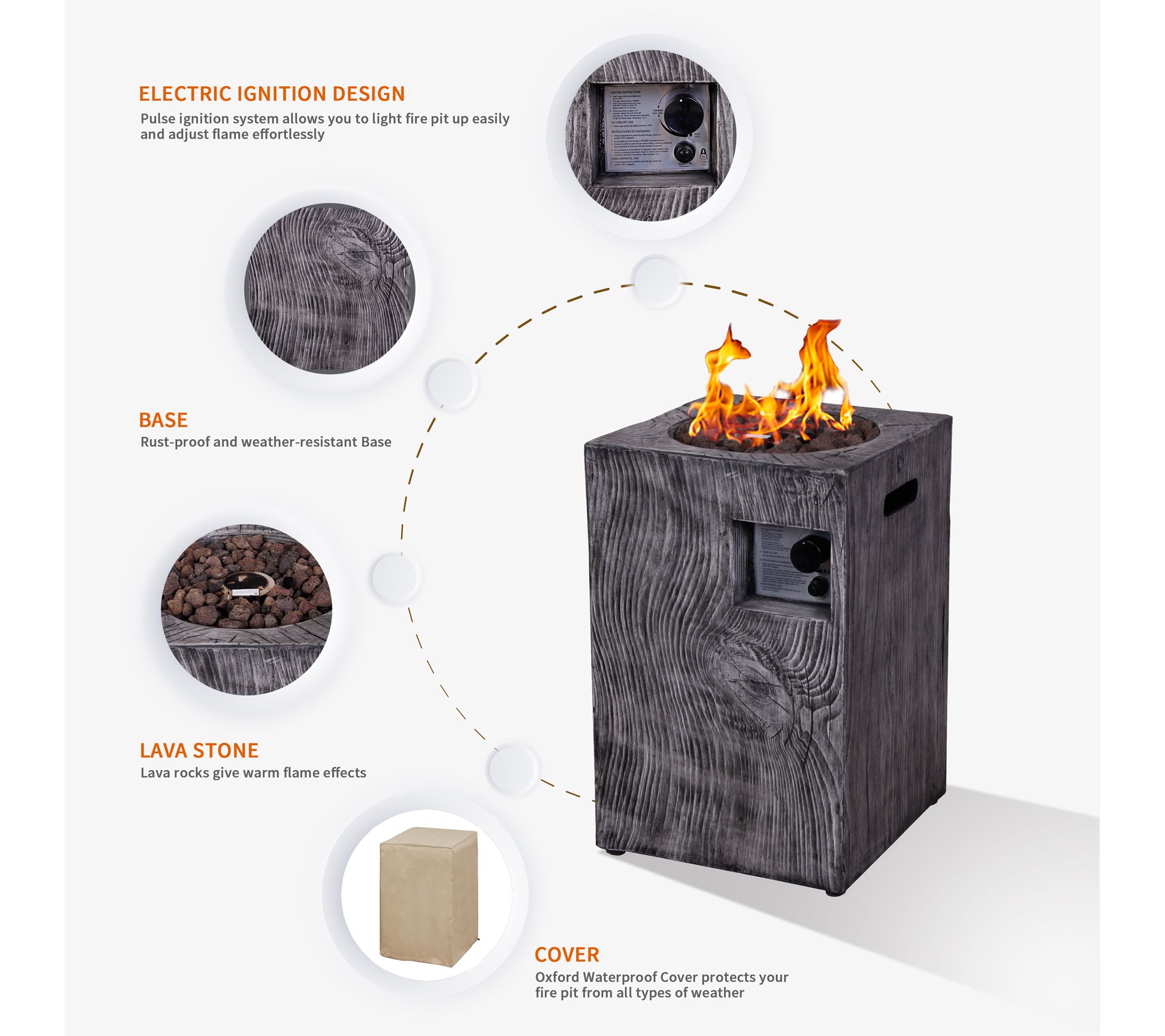 Transform your patio or backyard into a cozy retreat where gatherings linger around a stunning propane fire pit. The HEATMAXX Propane Column Fire Pit features an appealing wood-look design that beautifully highlights its dancing flames, making every night outdoors memorable -- whether you're hosting friends, relaxing after work, or warming up on cool evenings. From HEATMAXX.