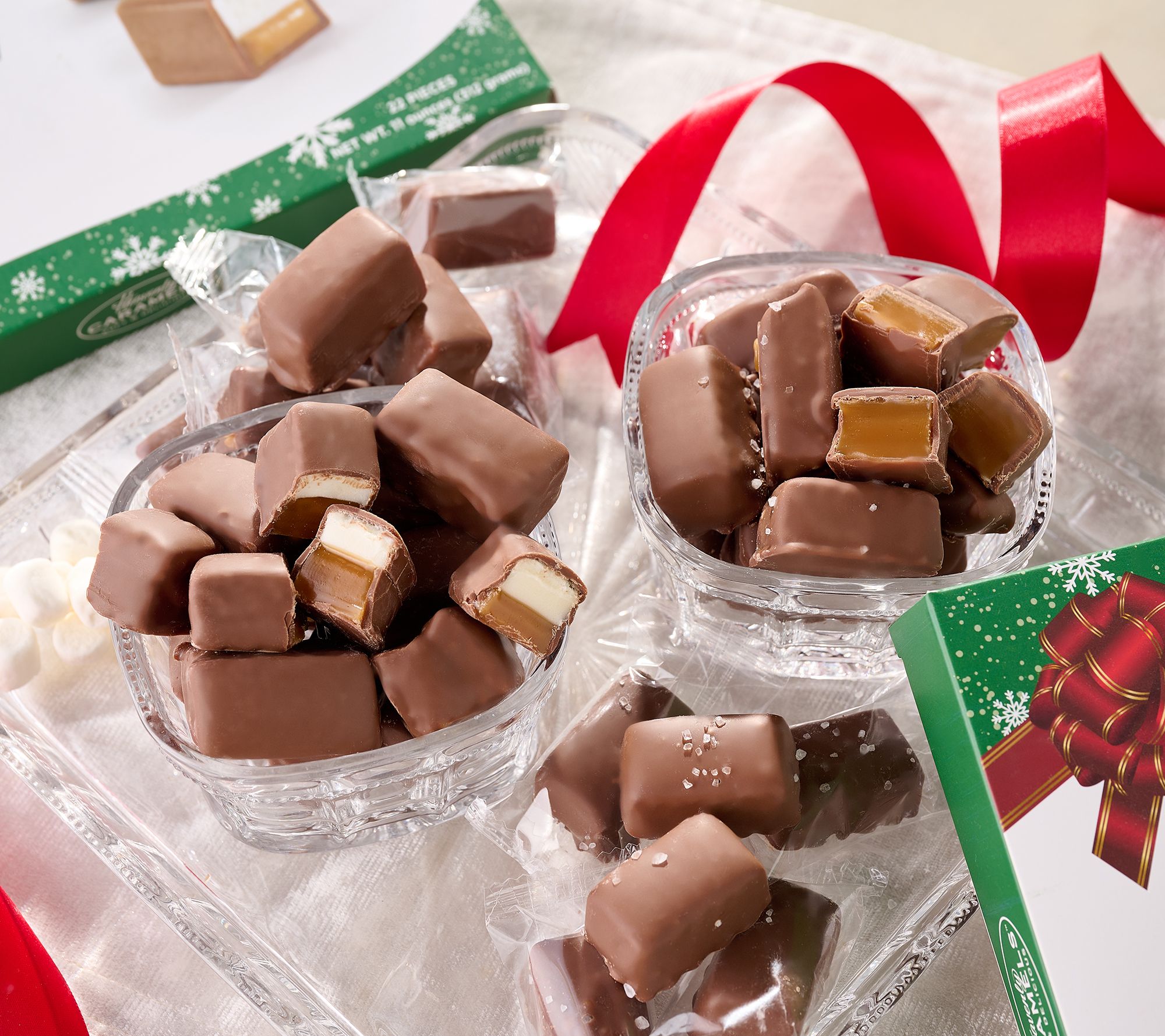 • Includes two boxes of 22 caramels each in choice of marshmallow, sea salt, or combo
