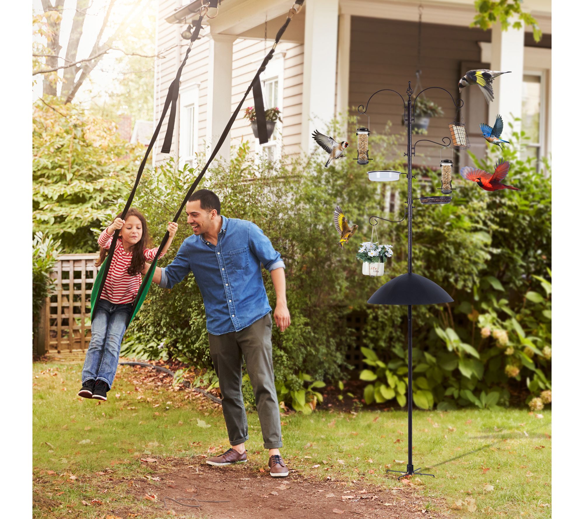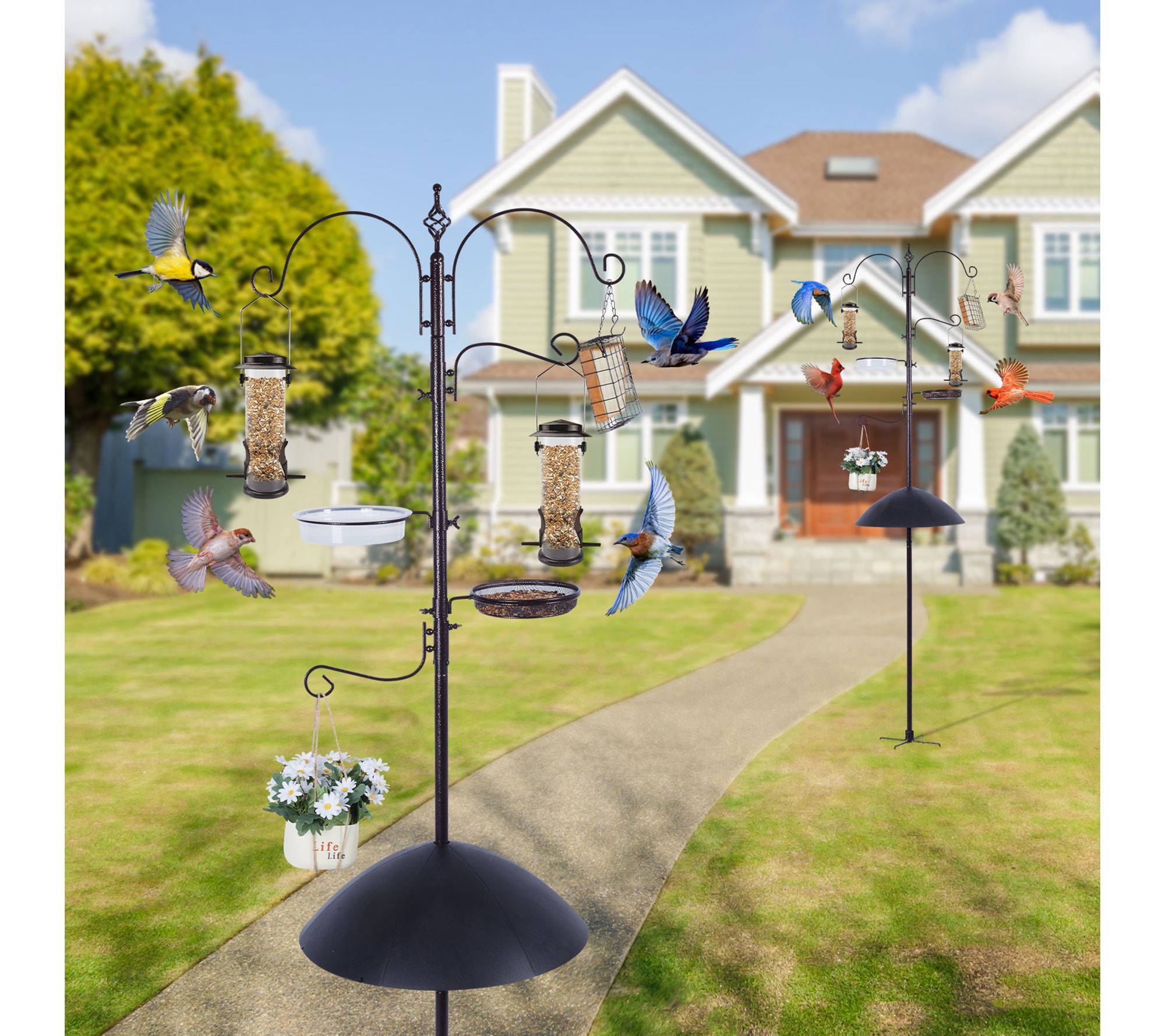 Transform your yard into a wildlife haven with this heavy-duty bird feeding station kit. Imagine enjoying a variety of birds flocking to the multiple height-adjustable hooks and dining on diverse offerings like hoppers, tubes, and suet feeders. Plus, the squirrel baffle ensures your feathered guests' meals are uninterrupted. From Evergreen.