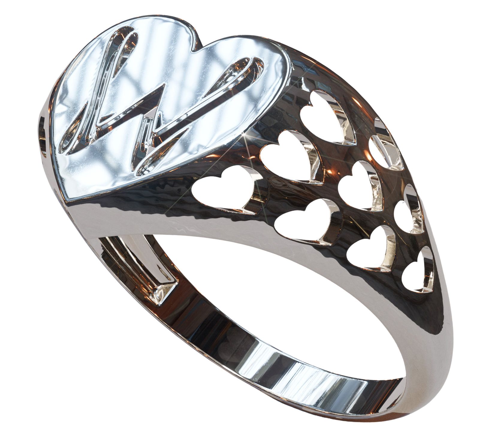 • Heart signet design; initial accent