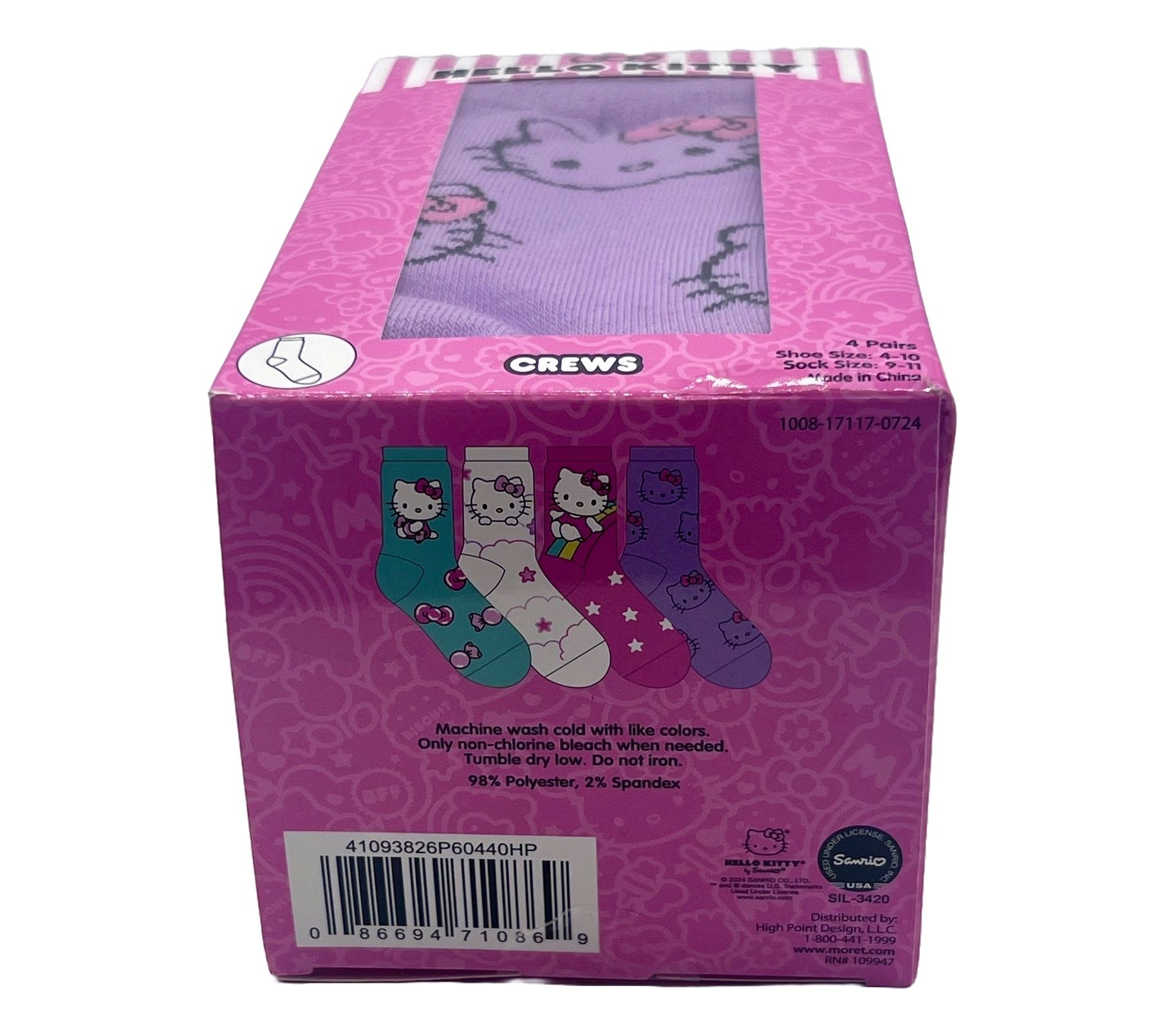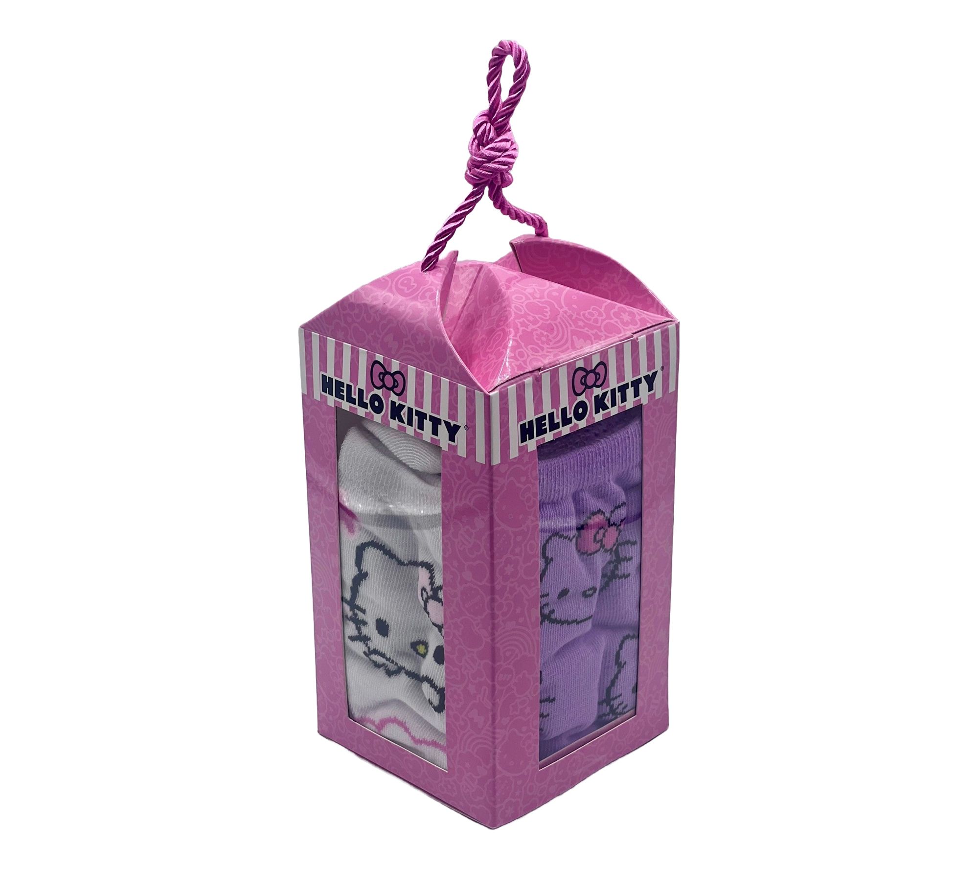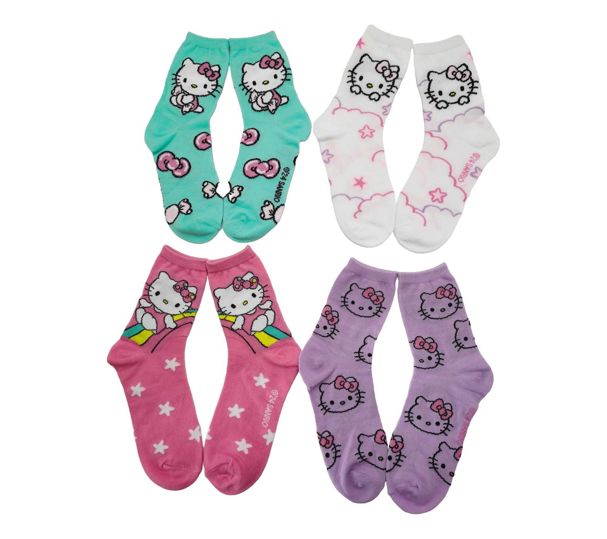 Step into comfort and style with the Hello Kitty ladies set of four crew socks. Featuring delightful Hello Kitty designs, these socks come in a charming lantern-shaped gift box, making them perfect for gifting or treating yourself. From Hello Kitty.