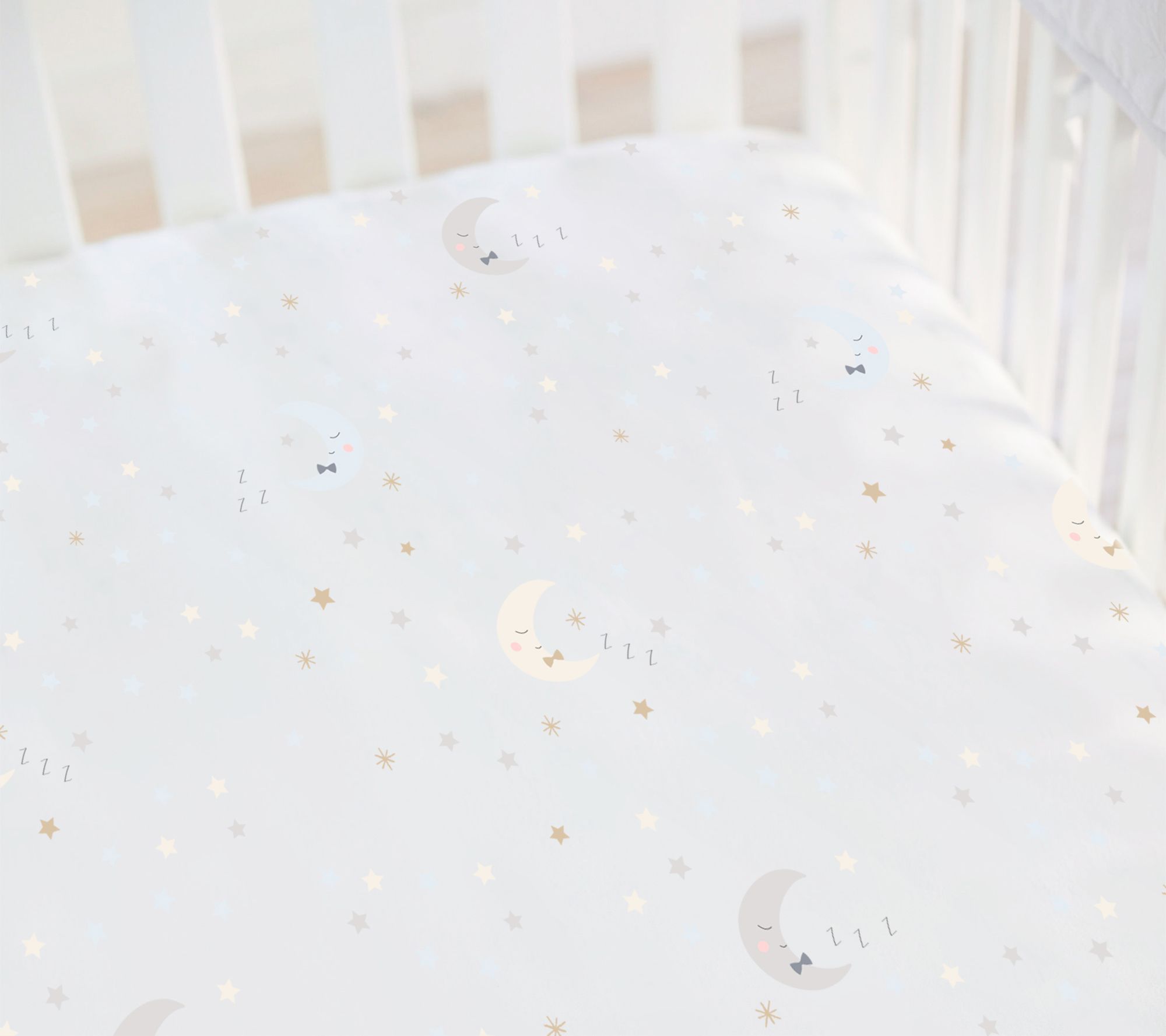 Hello Spud Gray Man on Moon Fitted Crib Sheet