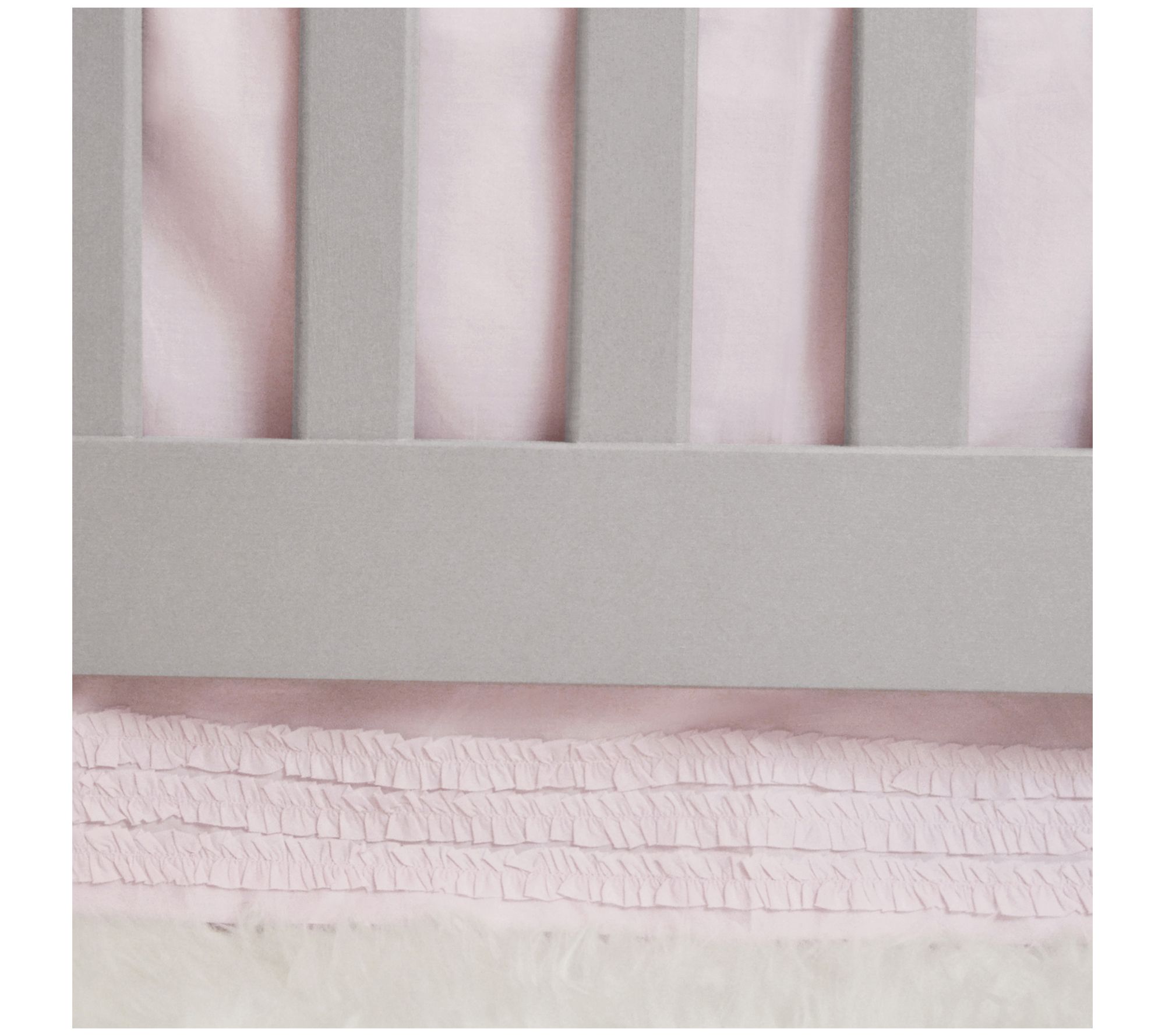 Lend a finished look to baby's nursery with this crisp cotton ruffled crib skirt that adds softness to their space. It also neatly hides errant toys underneath the crib to keep things looking tidy. From Lush Decor.