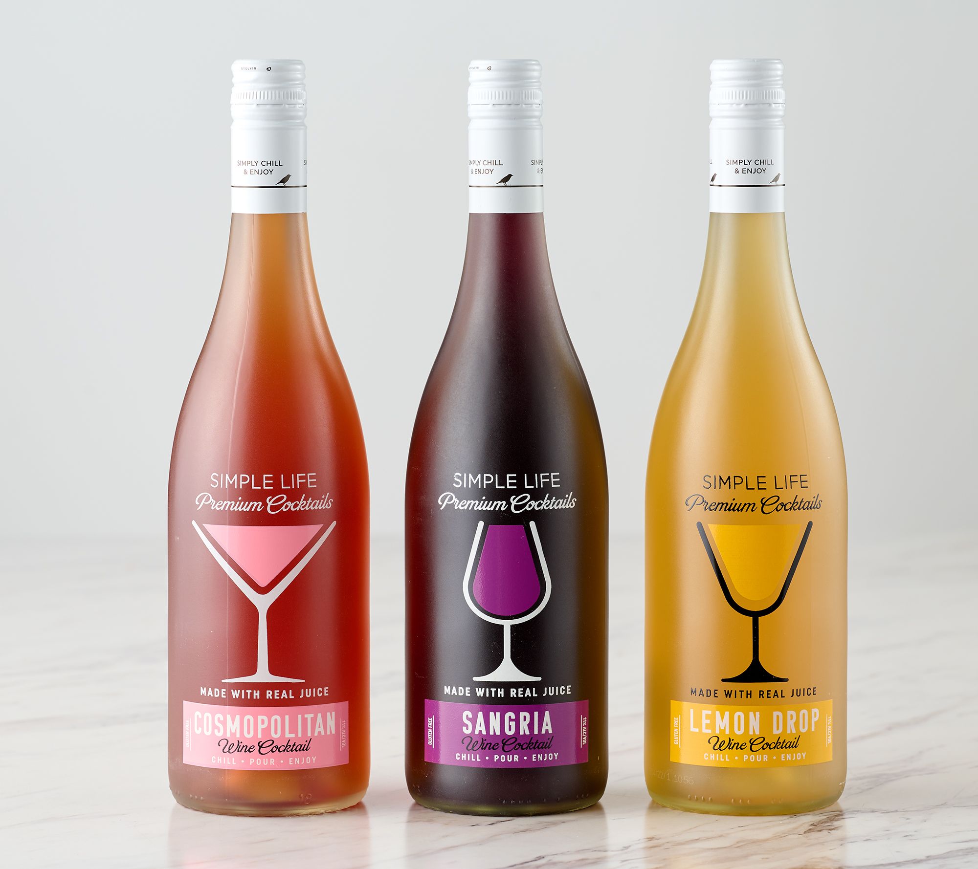 • Includes three 750-ml bottles of wine cocktails: one each of Lemon Drop, Cosmopolitan, and Sangria