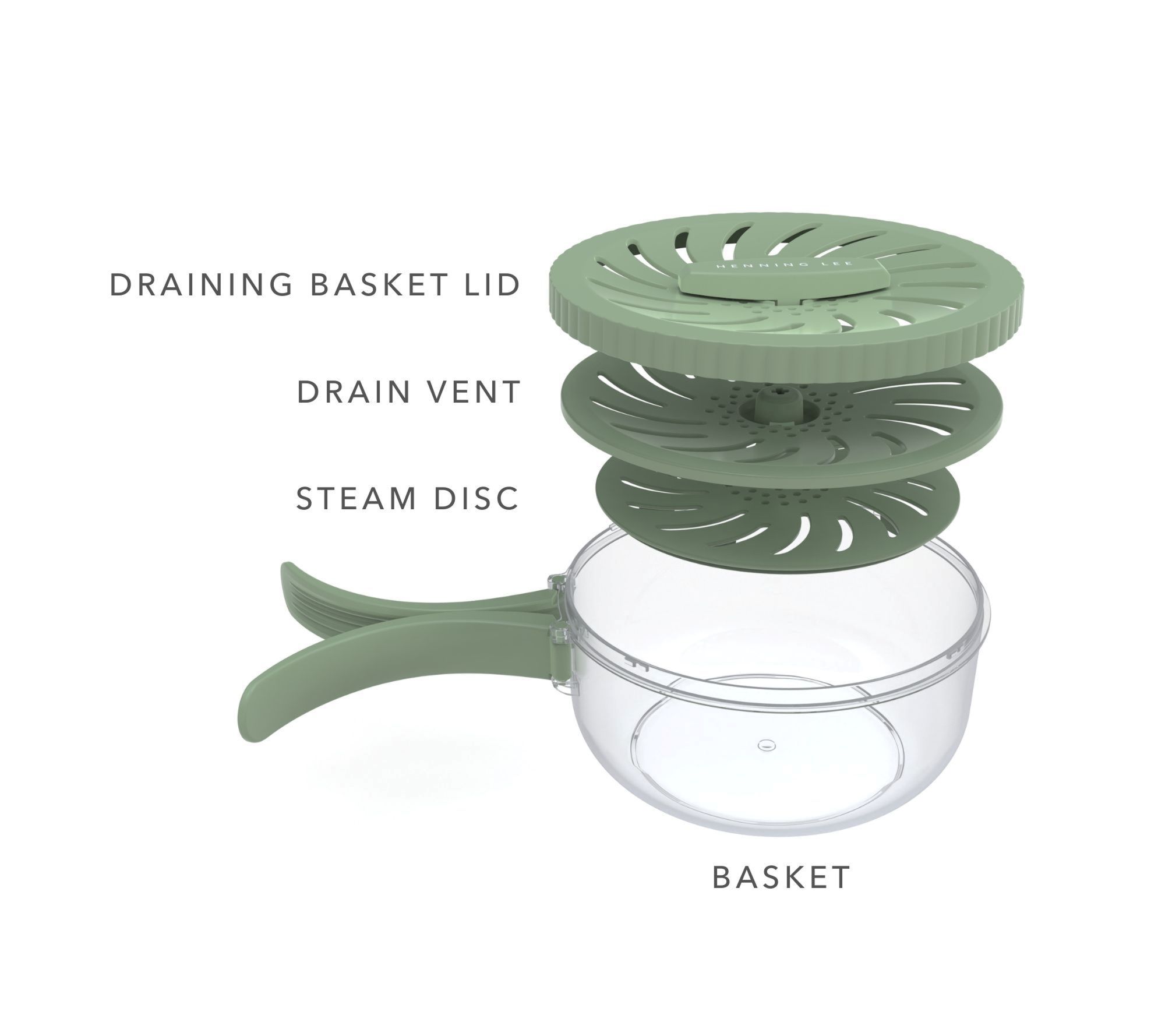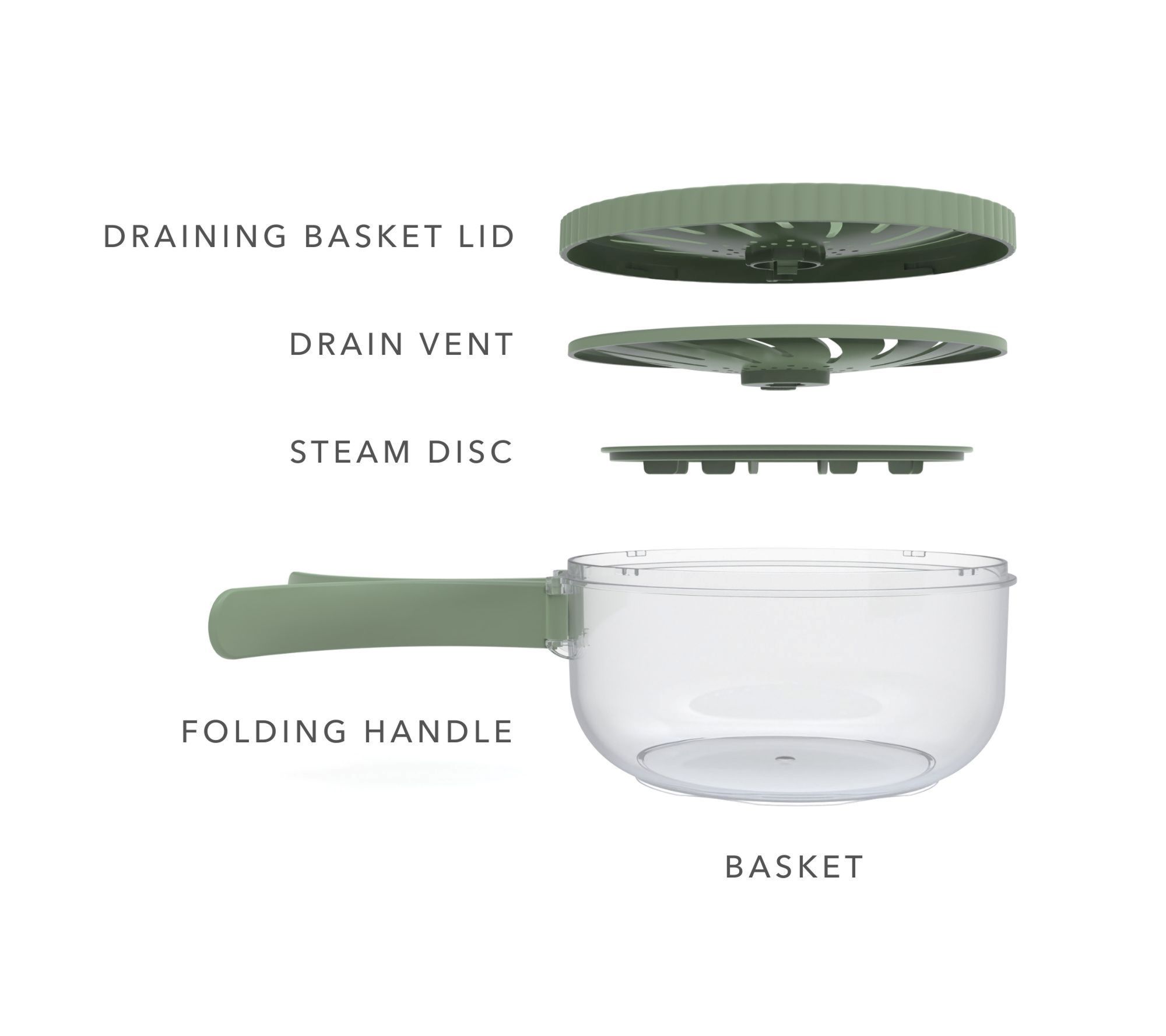 • Includes draining basket, lid, and steam disc