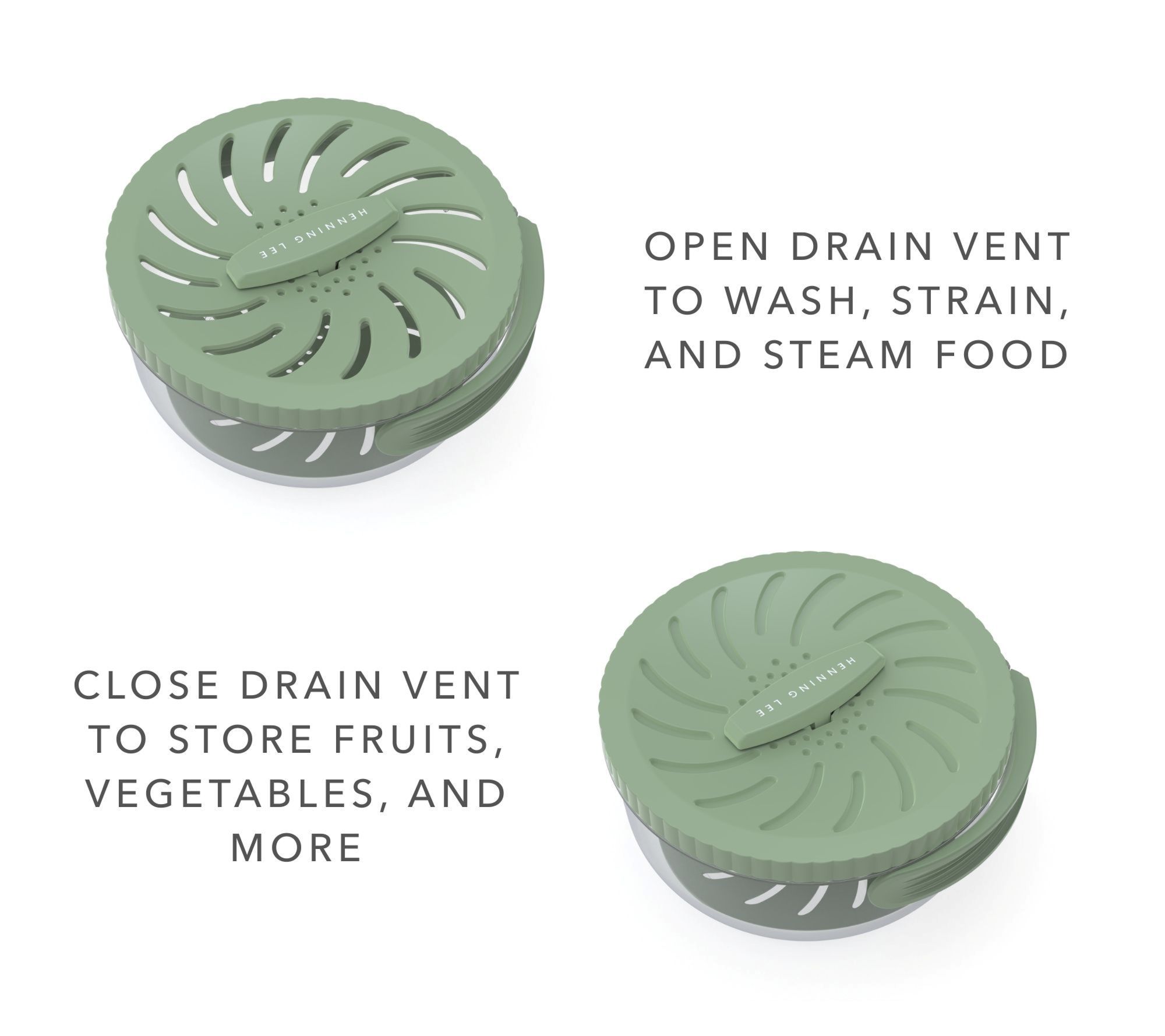 From rinsing berries to draining pasta, this versatile colander basket makes prepping meals quick and easy. The innovative lock lid and drain vent latch deliver effortless straining, while the steam disc lets you steam vegetables right in the microwave. Convenient handles and compact storage help keep your kitchen tidy and organized. From Henning Lee.