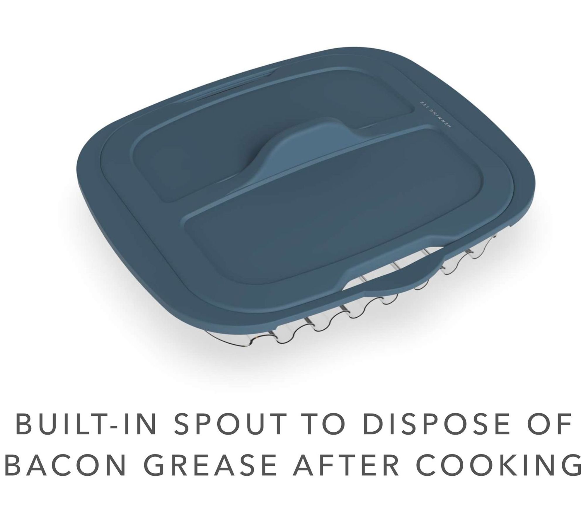 Weekend mornings just got easier with this silicone bacon pan. Create crisp, delicious bacon with less mess, thanks to the raised ridges that let excess fat drain away. The included lid keeps grease splatter contained, making cleanup a breeze whether you're preparing bacon, grilling vegetables, or roasting seafood. From Henning Lee.