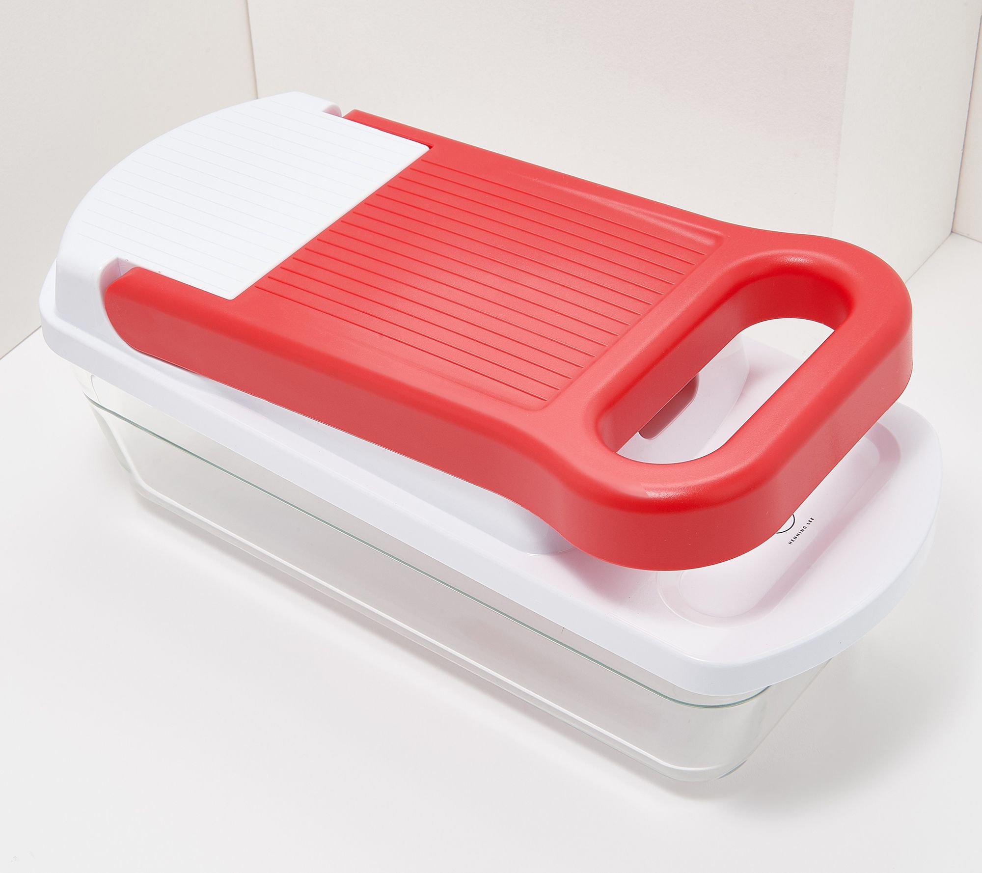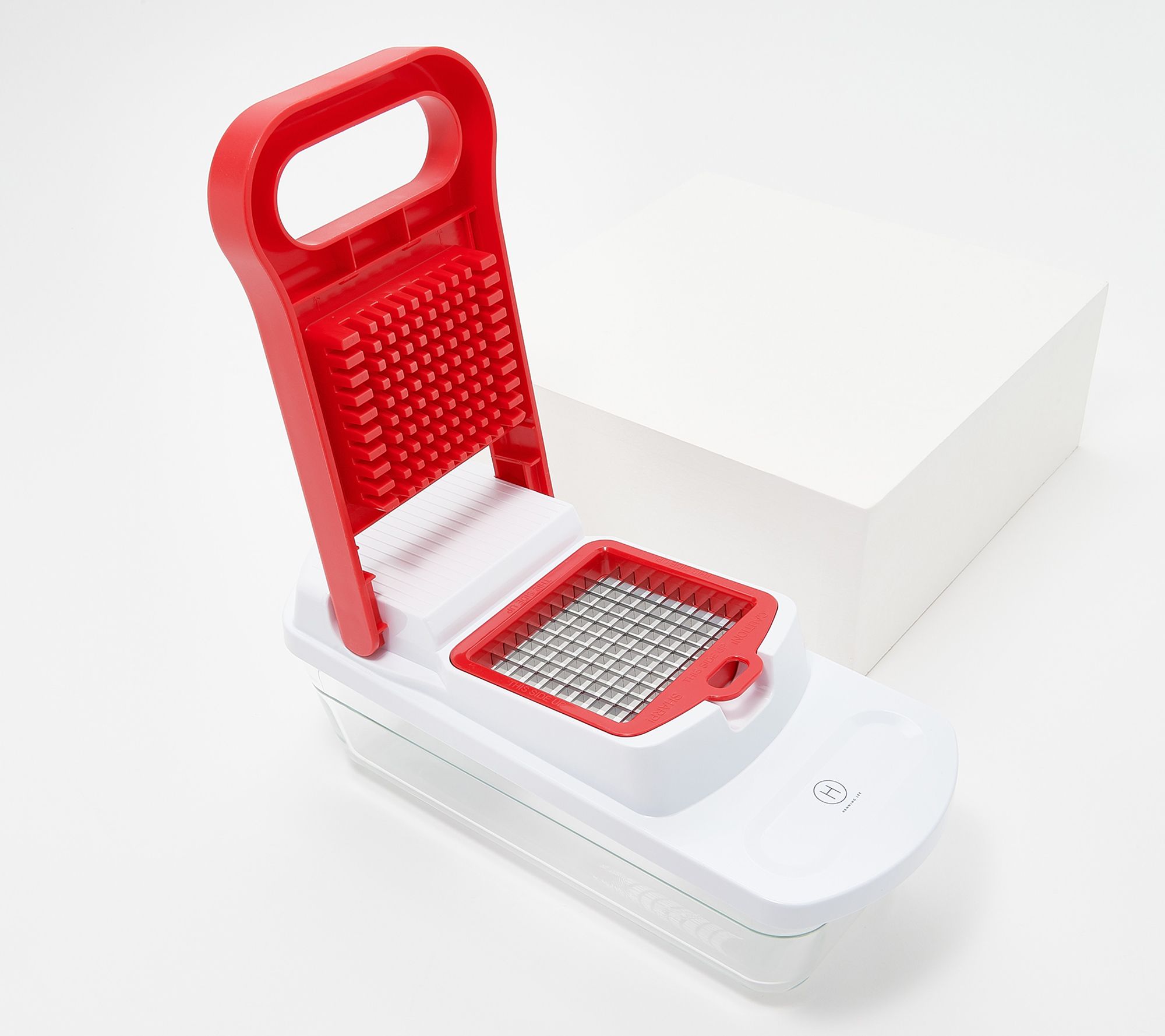 Cut down on kitchen clutter with this multifunctional chopper that does the job of several gadgets. Cut, chop, slice, and grate, making light work out of food prep. From Henning Lee.
