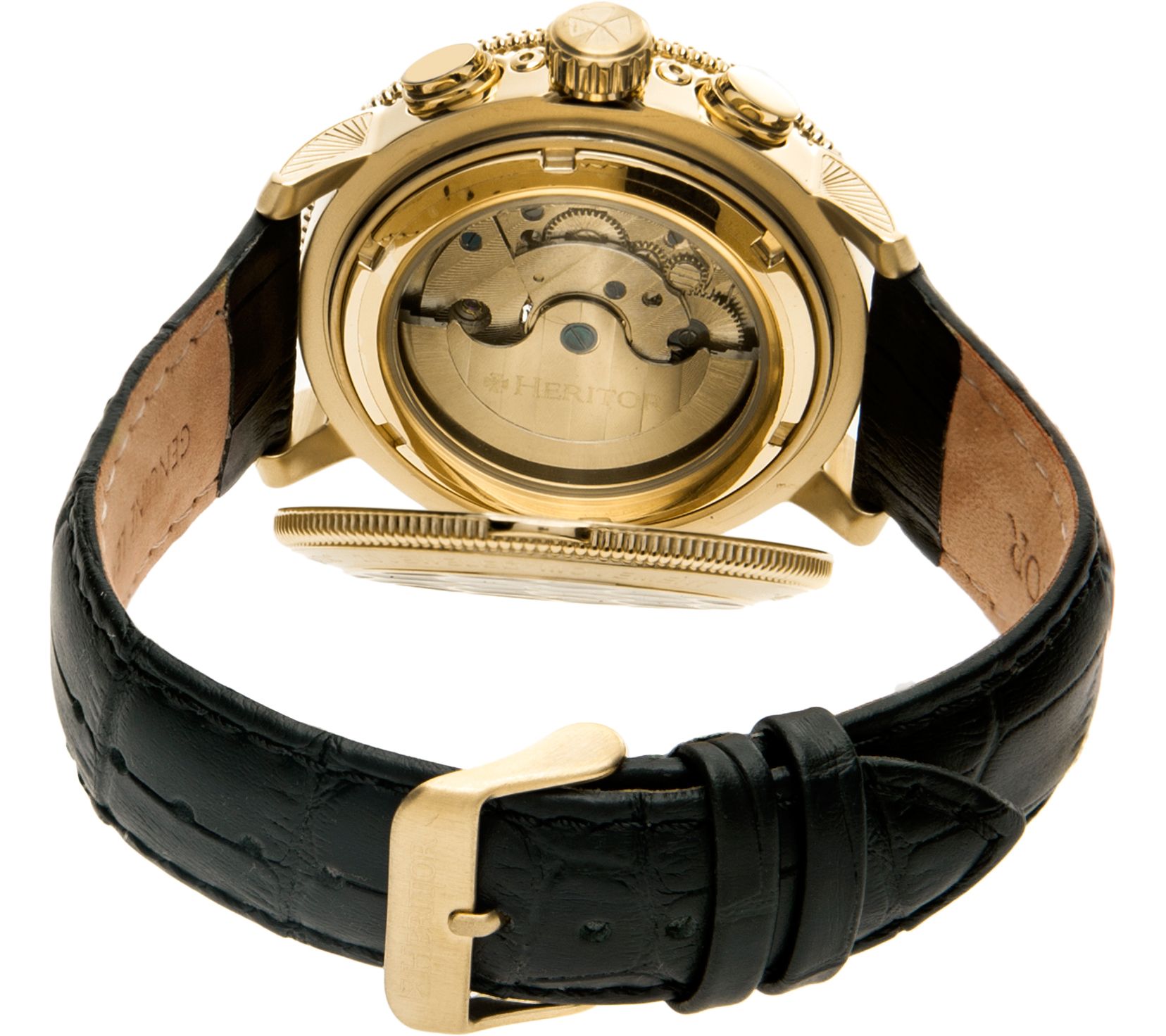 Time isn't the only thing Heritor's Aura watch tells--the beautifully detailed dial and semi-skeleton design affirm that you're punctual and perfectly accessorized. From Heritor.