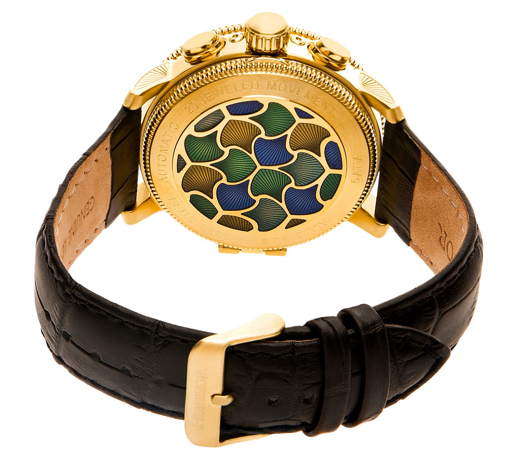 Who knew refinement could be so colorful? The automatic Aura watch is enhanced with vitreous enamel detailing and a semi-skeleton dial that exudes elegant sophistication for the modern man. From Heritor.