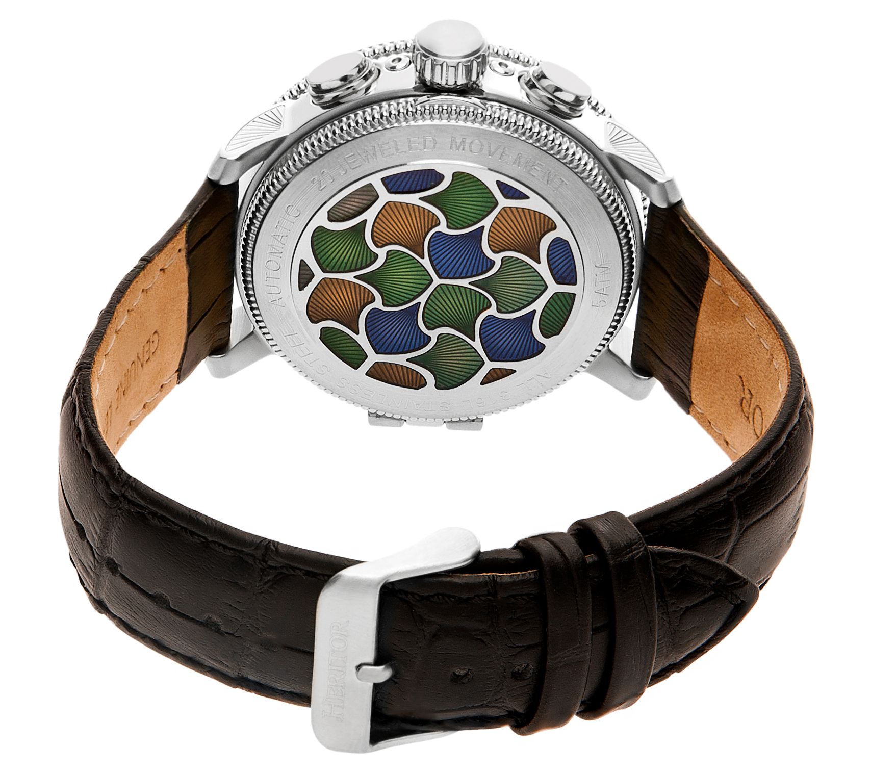 Who knew refinement could be so colorful? The automatic Aura watch is enhanced with vitreous enamel detailing and a semi-skeleton dial that exudes elegant sophistication for the modern man. From Heritor.