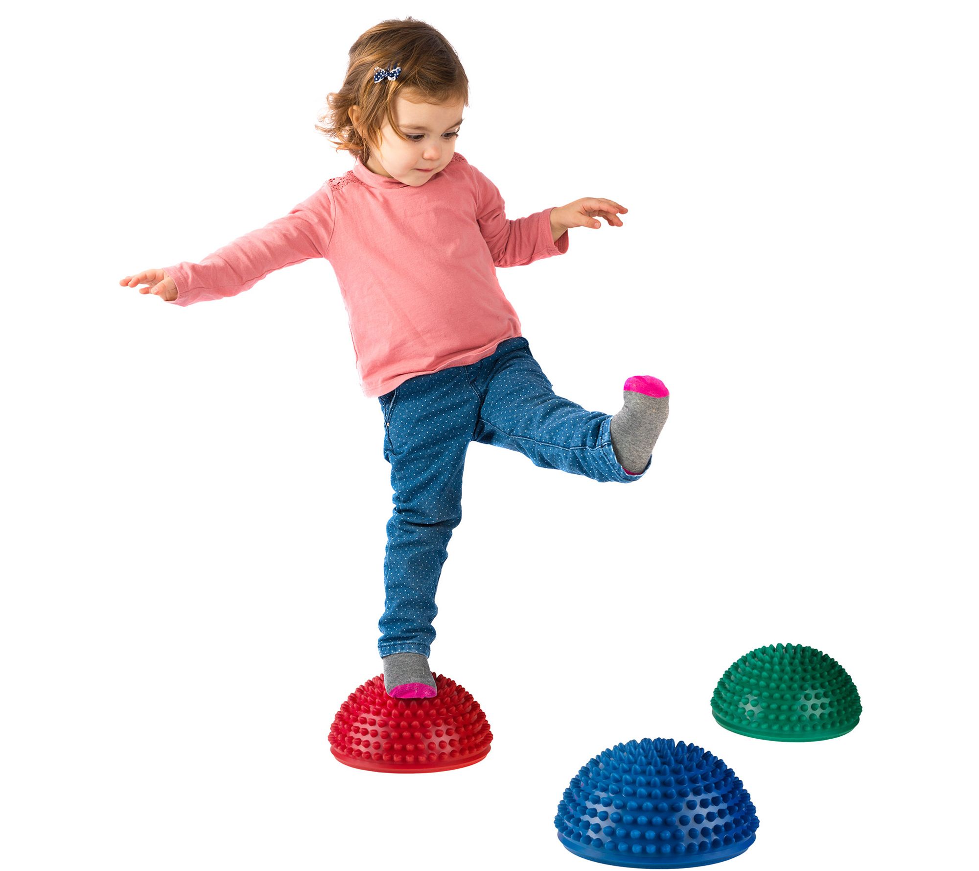 • Includes six balance pods: two each in blue, green, and red