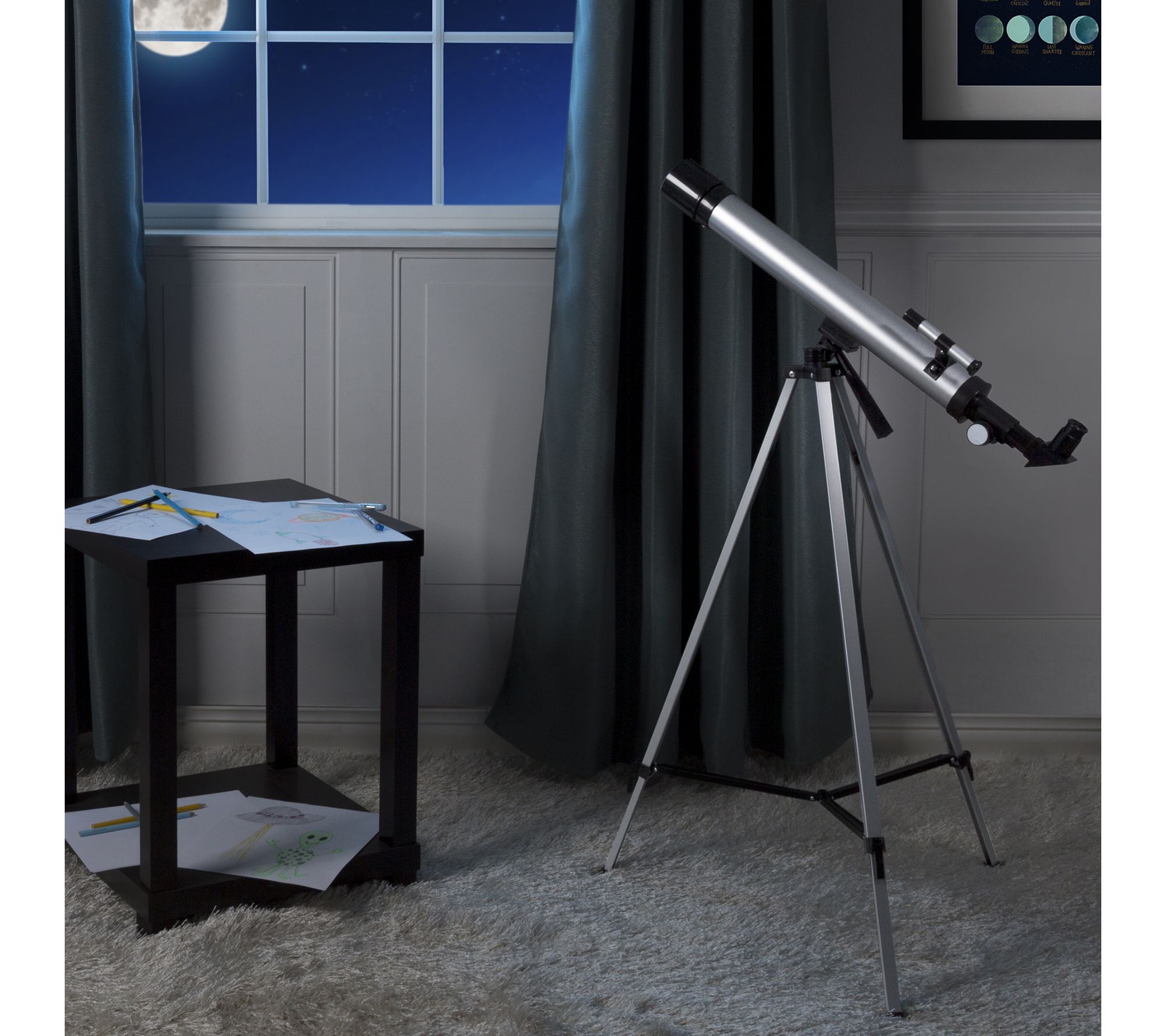 Bring kids closer to the stars with this 60mm refractor telescope. Amateur astronomers can easily view the sky through a mirrored, diagonal eyepiece that magnifies the Milky Way and more. From Hey! Play!