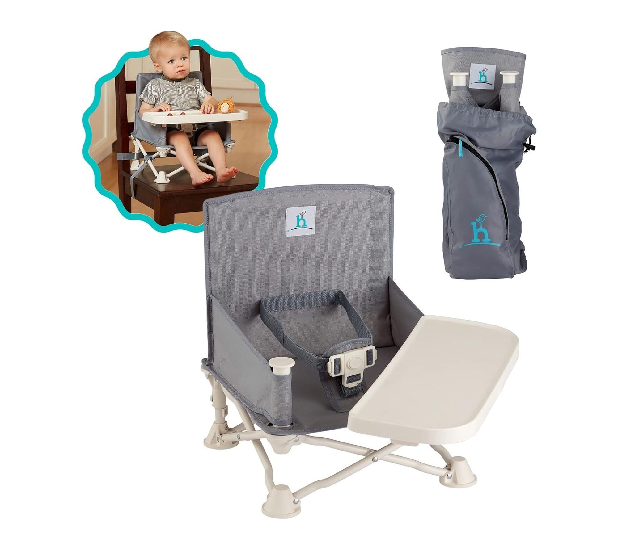 Whether you're headed out for family adventures or dining at home, this portable high chair makes mealtime easy and enjoyable for little ones. Designed for travel, it sets up in seconds and folds neatly into its carry bag, so you can bring a comfortable, safe seat wherever life takes you. A removable swivel tray adds extra convenience for snacks and play. From Hiccapop
