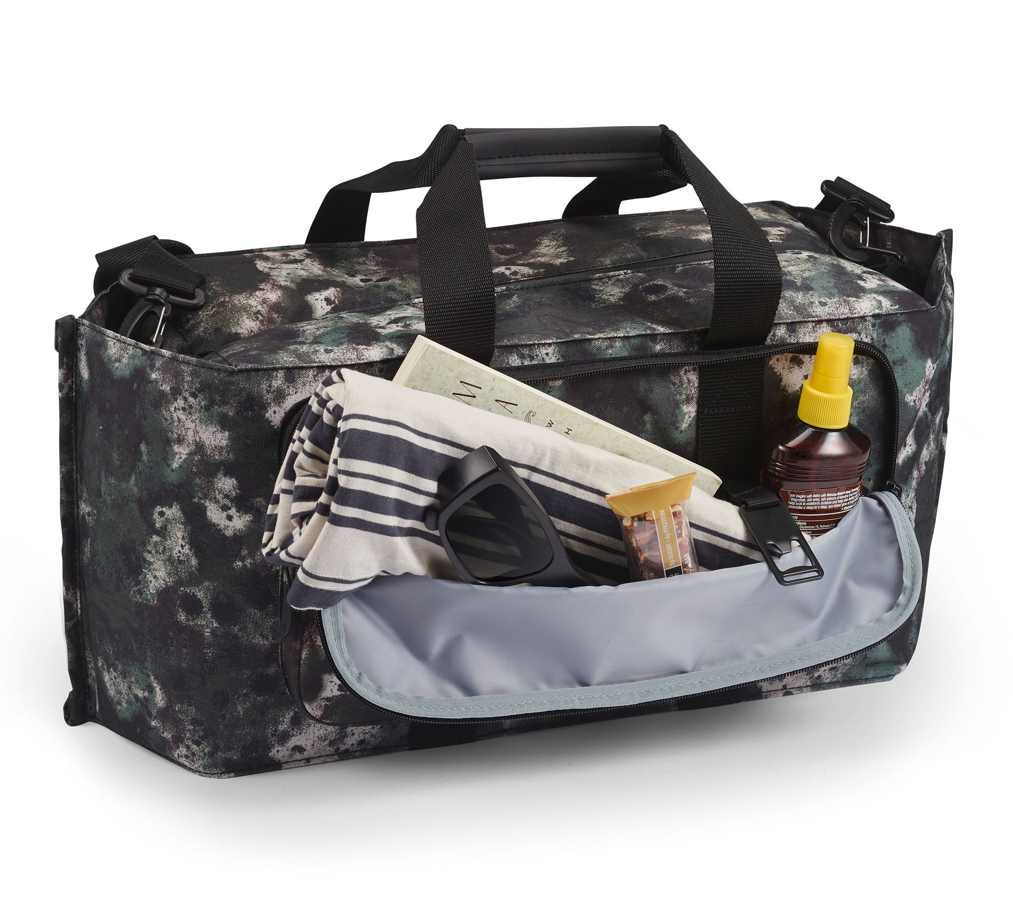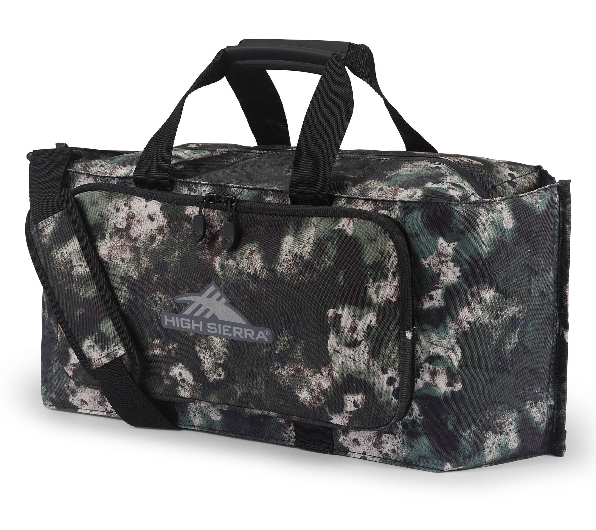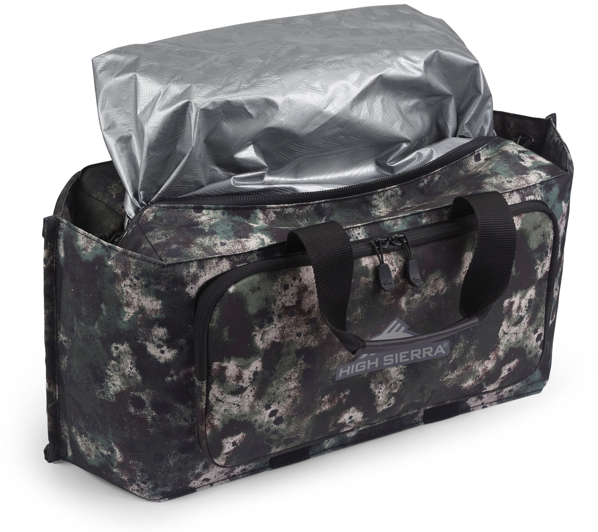 Perfect for keeping food or drinks cool while you're adventuring, this cooler duffel holds 18 cans plus ice. The welded drop liner pulls out for easy cleaning and it folds flat for easy storage. Use the front zippered pocket for cooking utensils and the clear zippered pocket for your cell phone. From High Sierra.