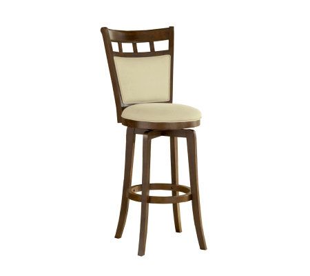 A perfect fusion of modern and traditional elements, this swivel counter stool is for those who want a more subtle contemporary look. The rich, brown cherry finish and neutral ivory upholstery complement existing decor. From Hillsdale Furniture.