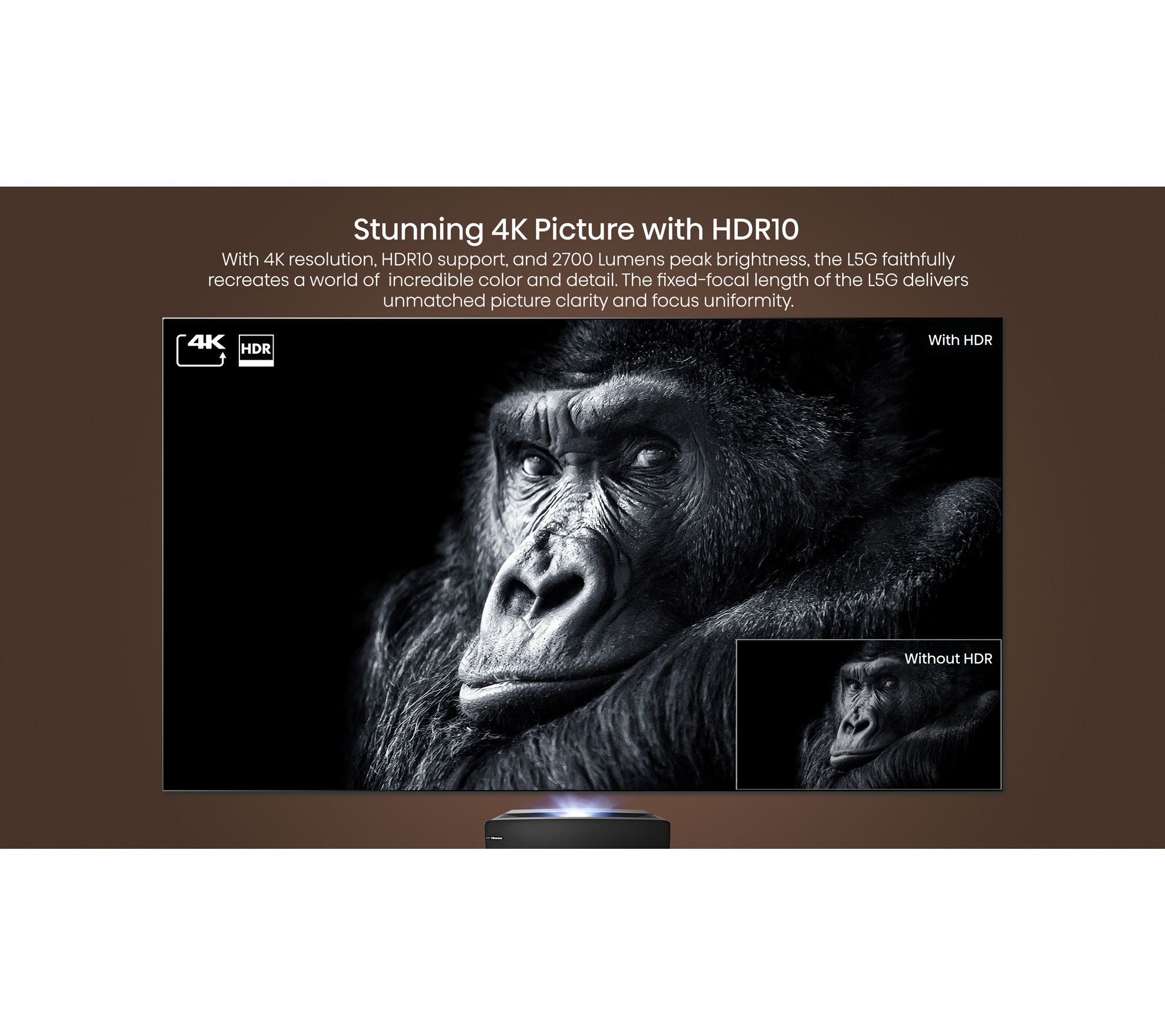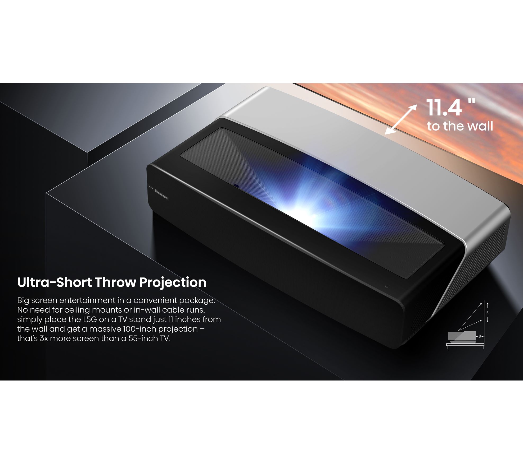 Big screen, big entertainment. Enjoy all your favorite shows, movies, sporting events, and more with this L5G laser TV with 100" projector screen. From Hisense.