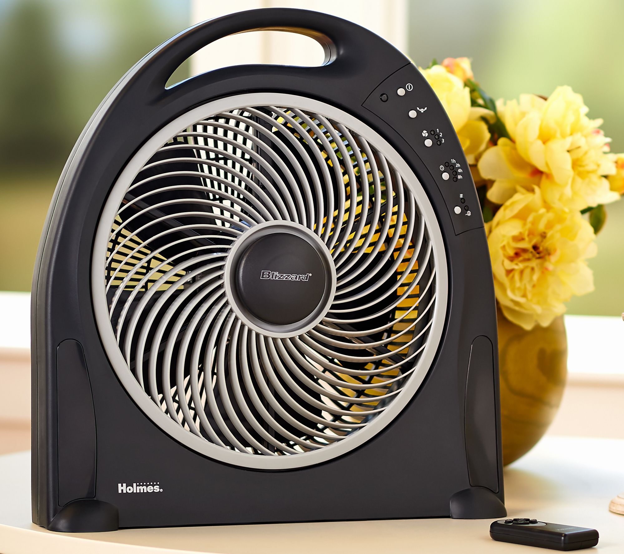 This Holmes Blizzard fan boasts a powerful Blizzard motor and blade that combines with a unique oscillating swirl grille to deliver superior air dispersion. Too hot to get up and adjust the settings? Stay seated--the convenient remote control lets you do that from wherever you're already comfy. From Holmes.