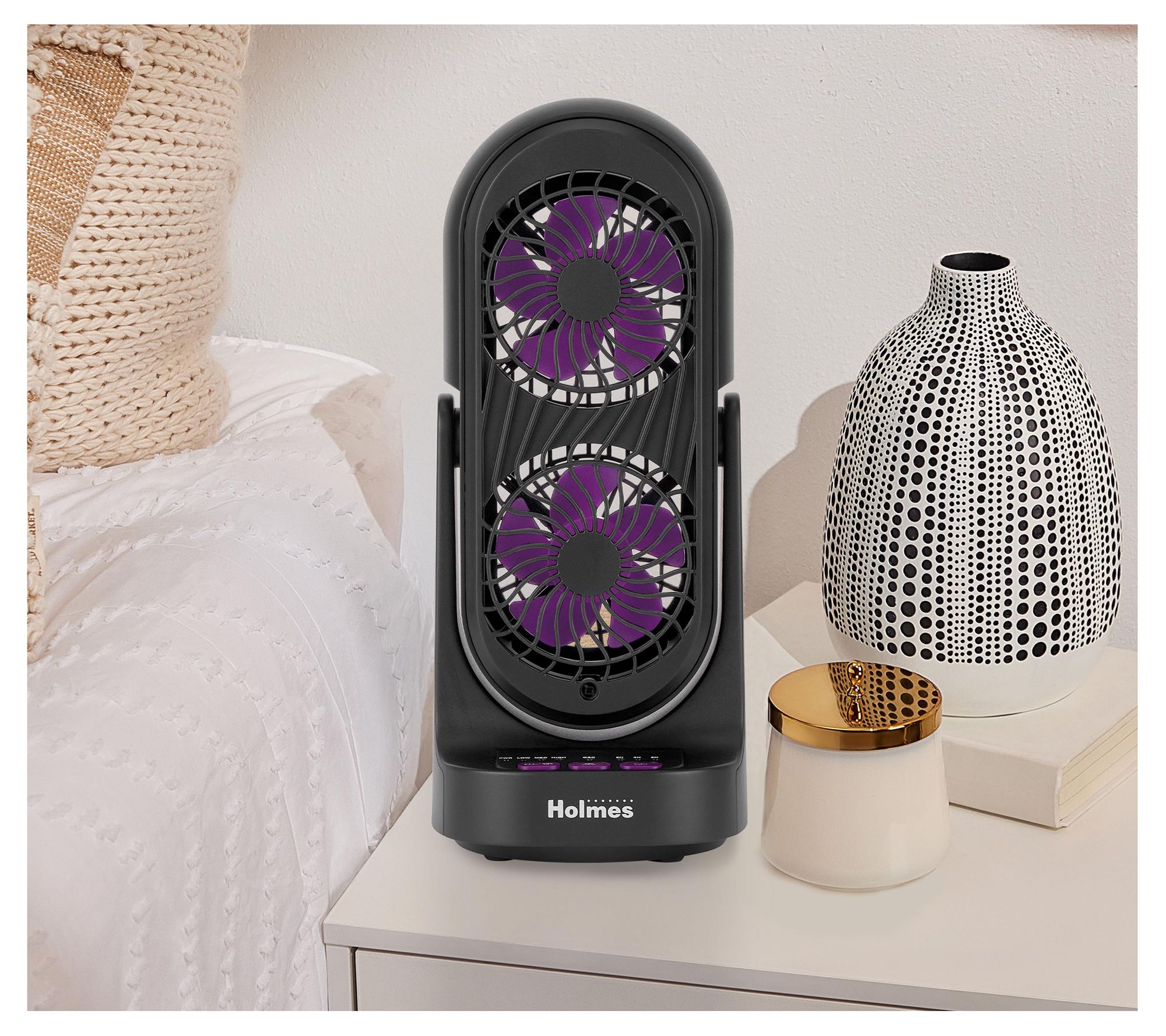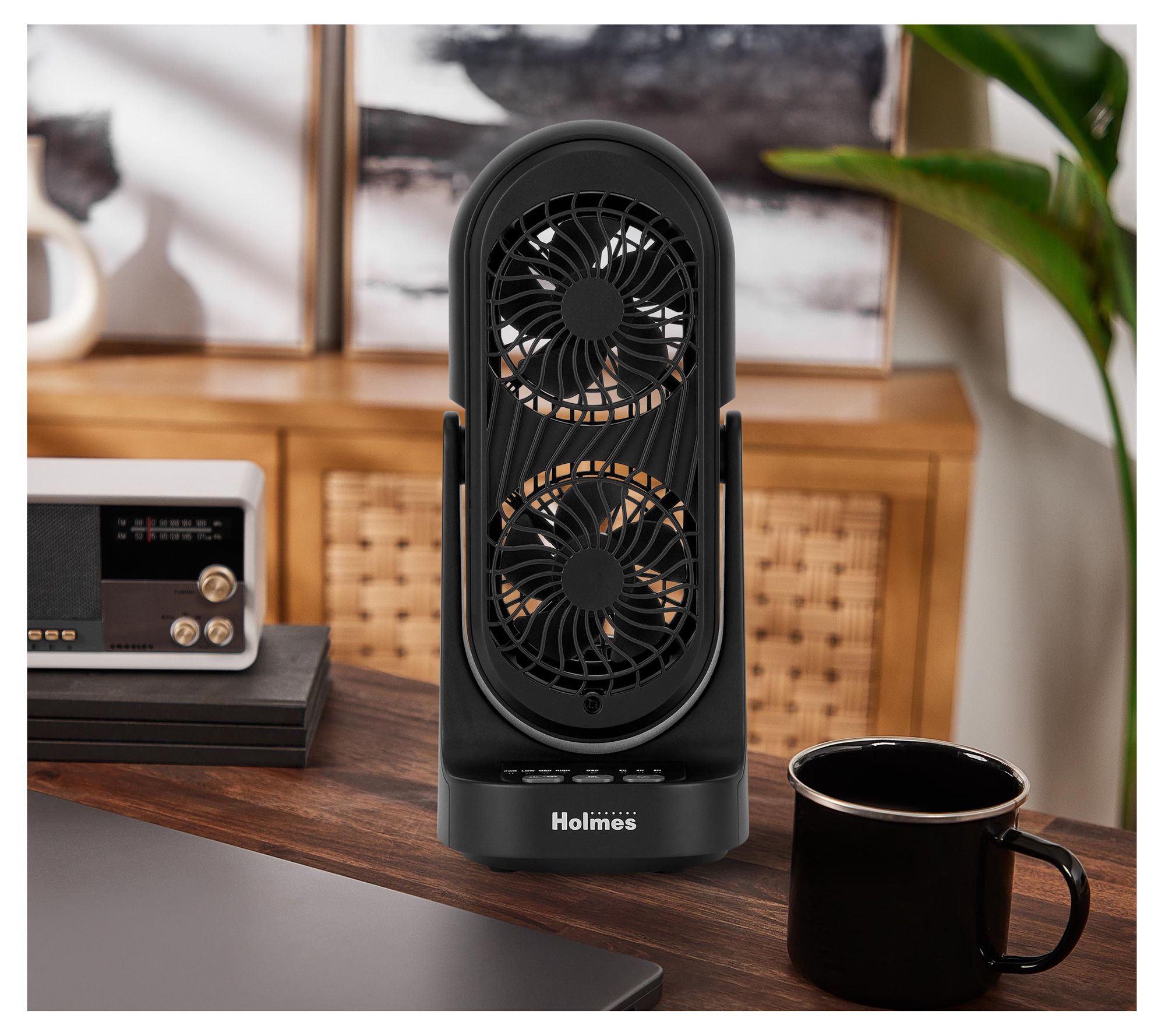 Stay cool and comfortable while working or relaxing, thanks to this desk fan that fits neatly in compact spaces. Customizable airflow, a dual blade design, and wide-angle oscillation make it easy to refresh your entire room, while Clean Breeze technology helps you maintain fresh circulation by simply removing the grill for cleaning. Set the eight-hour timer and let the cool breeze do the rest. From Holmes.