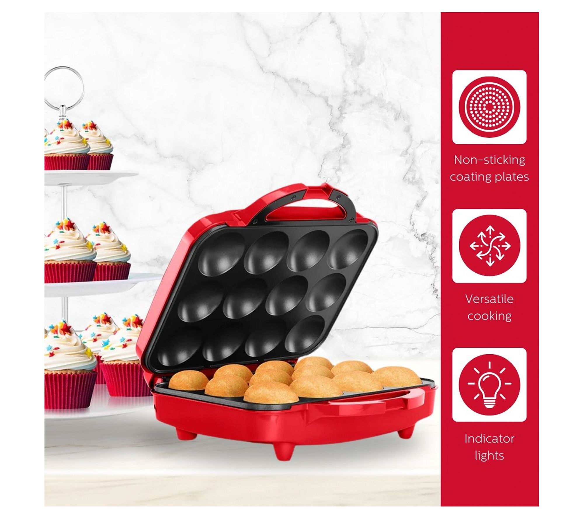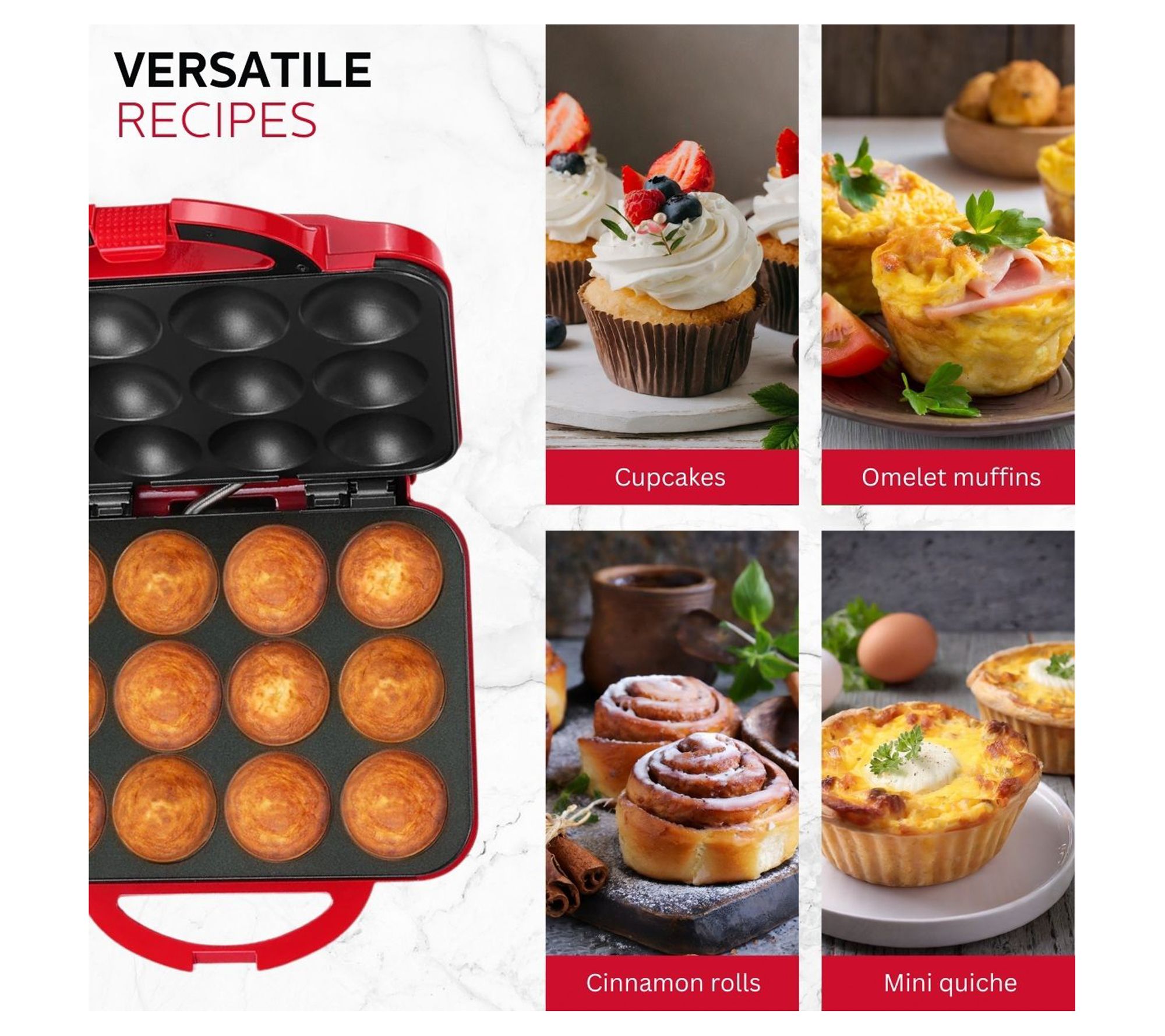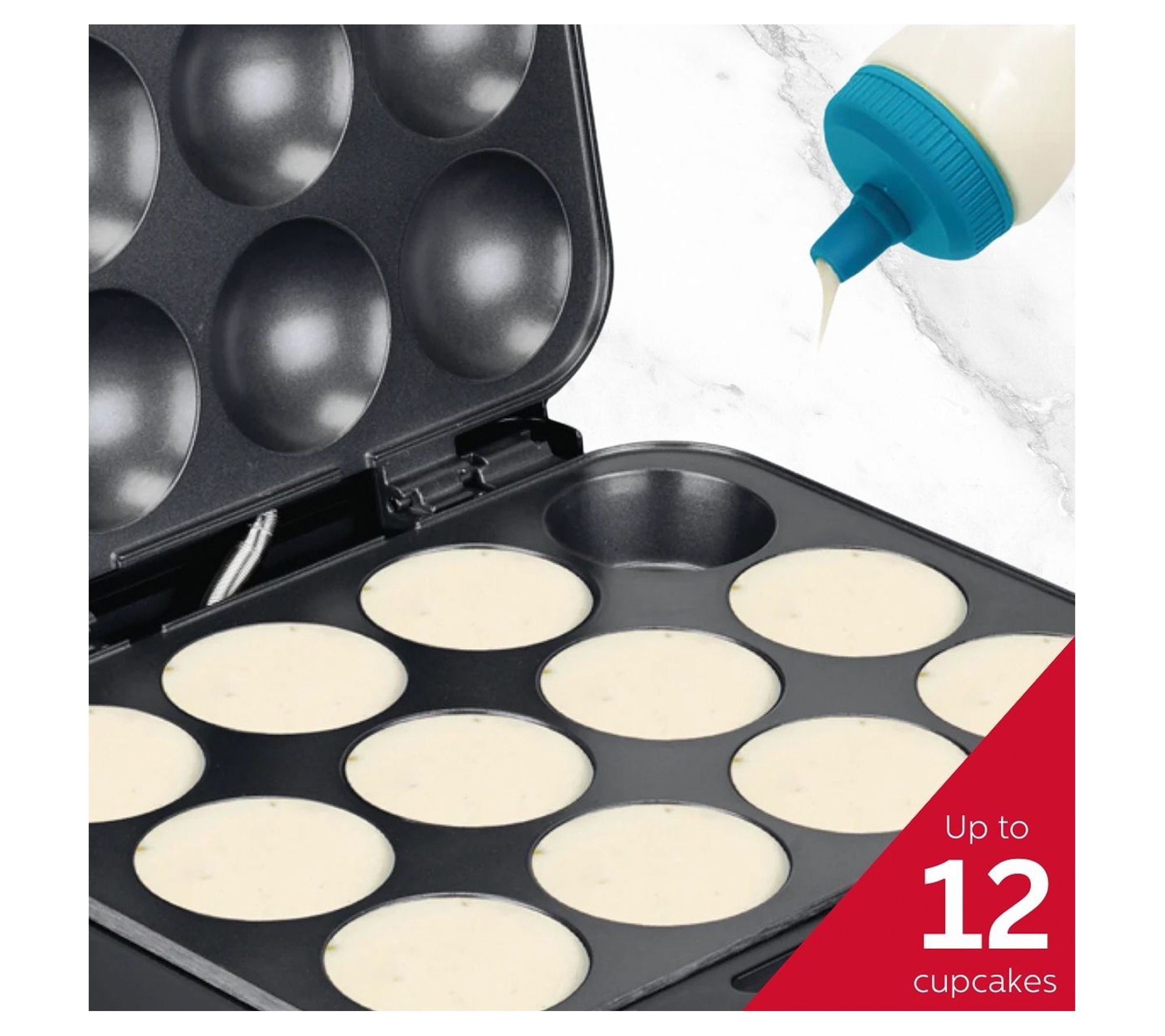 • Bakes 12 full-size cupcakes quickly