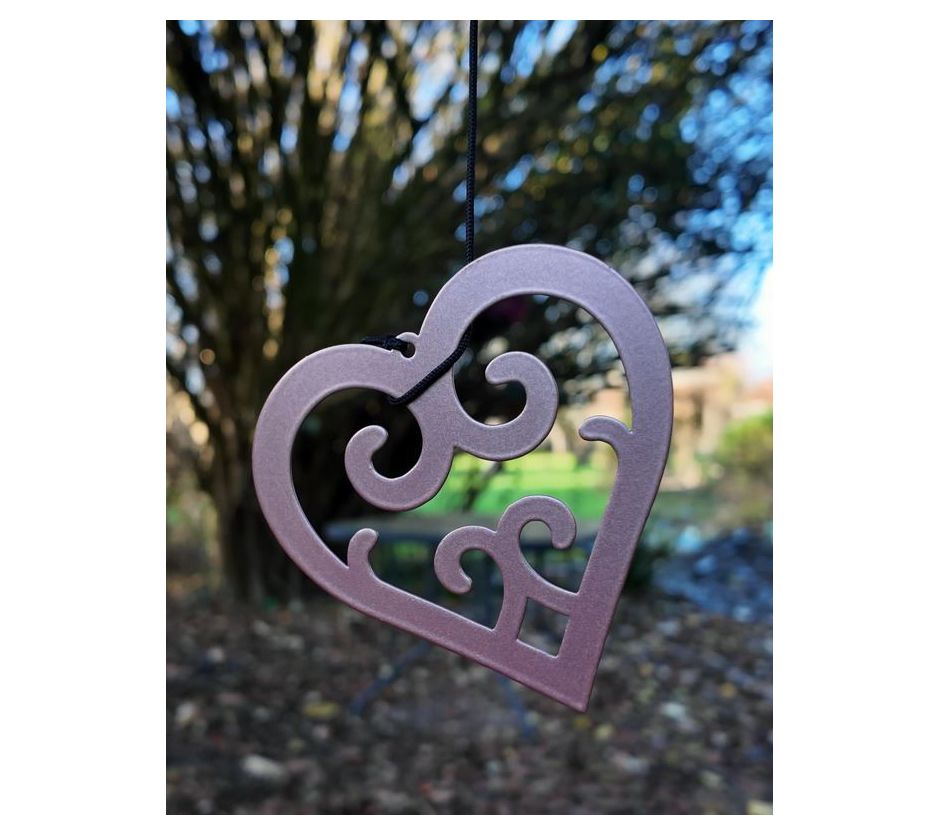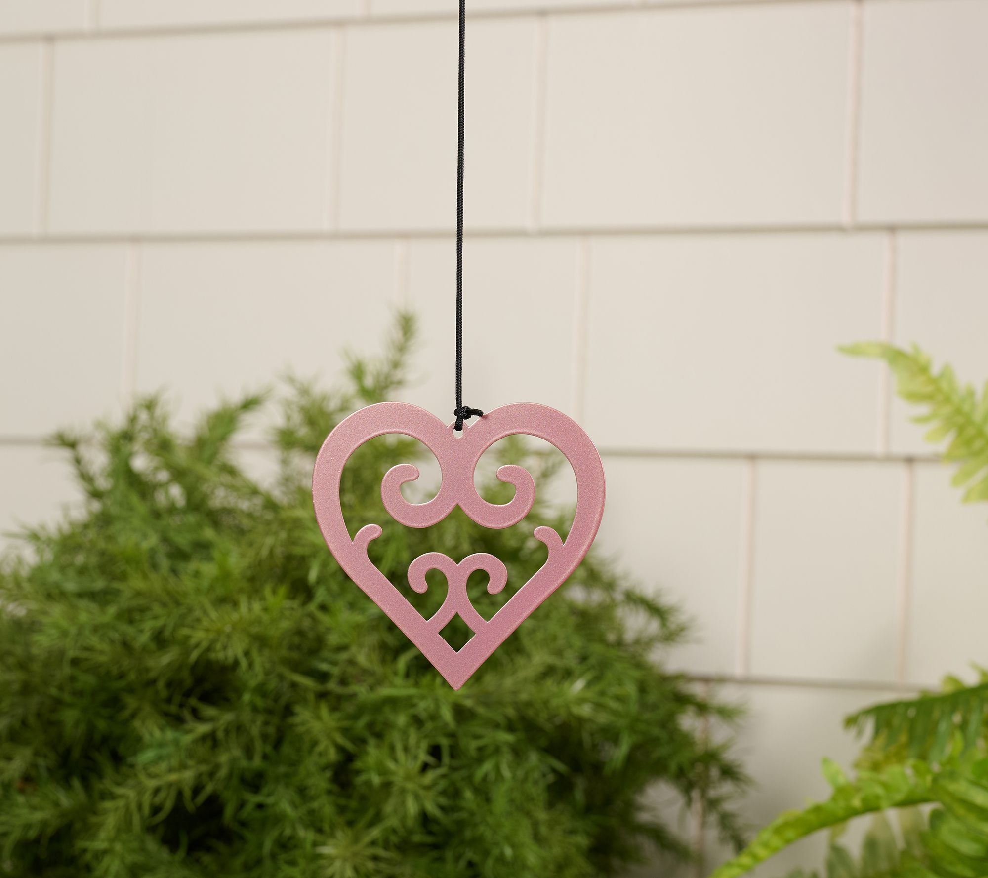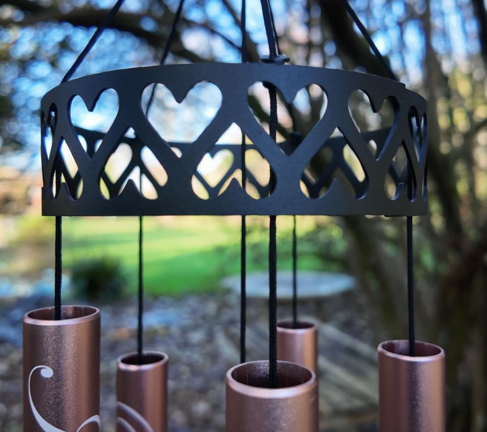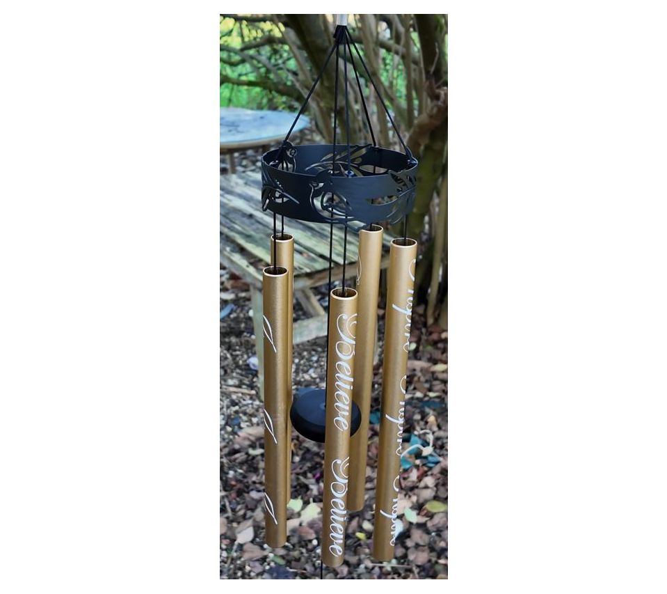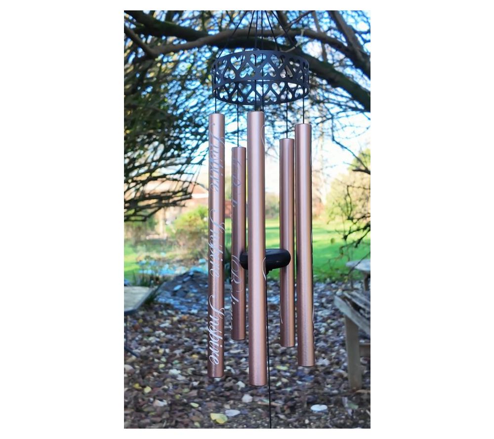 • Five hand-tuned chimes hang from decorative top; emblem shape hangs below