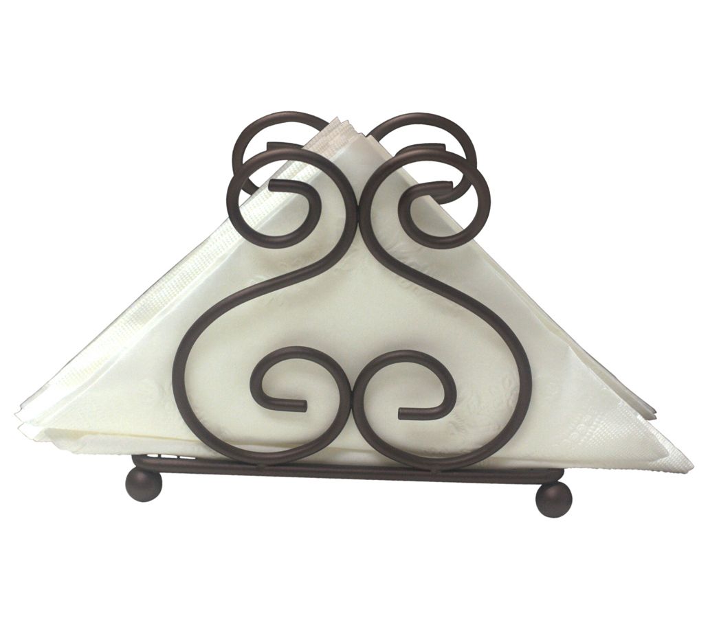Add a welcoming touch to your kitchen by displaying your napkins in this charming, scroll-style stand. From Home Basics.