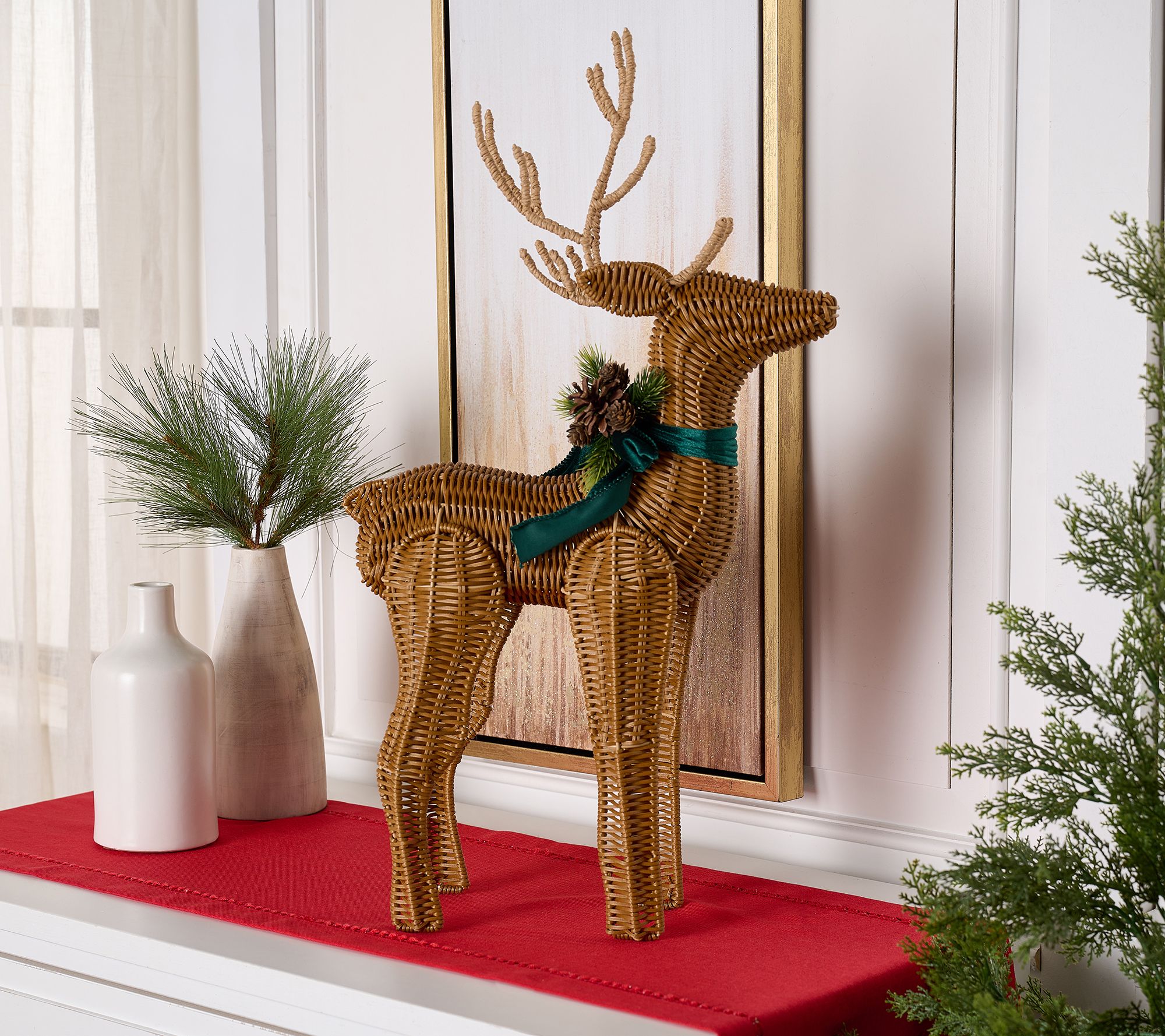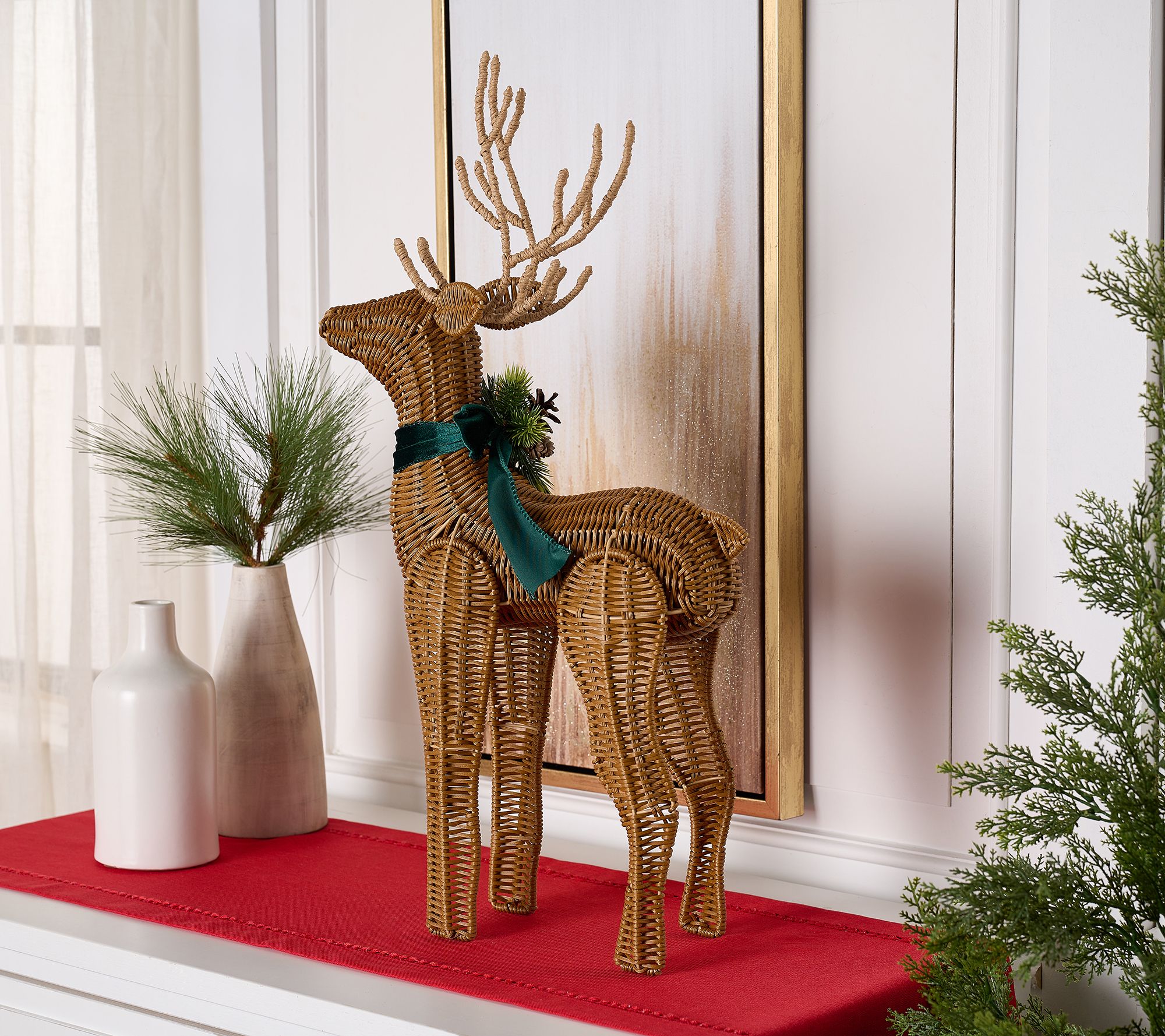 Add a dash (or Dasher!) of festive charm to your holiday scene with this faux rattan reindeer. Standing tall near your fireplace or nestled beside the tree, it brings a natural-inspired accent to your decor. From Home Reflections®.
