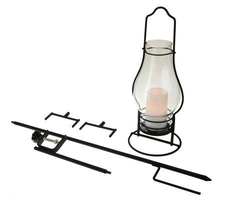 Four-way decor. In home decorating, versatility is key, and this four-in-one lantern offers plenty of options. Have the perfect spot for it in the house? Place it on a table or mantel. Want to use it outside? Stake it in a garden or by a walkway. Use the chain that's included and hang the lantern on a porch or pergola. A flameless LED candle is built in, and once you place this lantern in your favorite spot, you can use its timer to set your space aglow automatically. From Home Reflections(R) Flameless Decor.