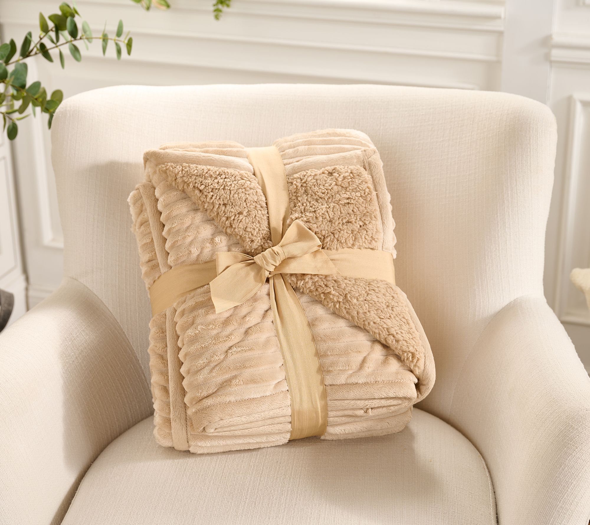 This Home Reflections Velvetplush and sherpa throw is sooo extra.... extra comfy and extra cozy for cool nights or lazy afternoons. Add it to your family room for movie marathons, or toss it over an armchair, sofa, or bed as an elevated accent -- it's soft, stylish, and comes in a gift bag (if you'd like to share the warmth). From Home Reflections®.
