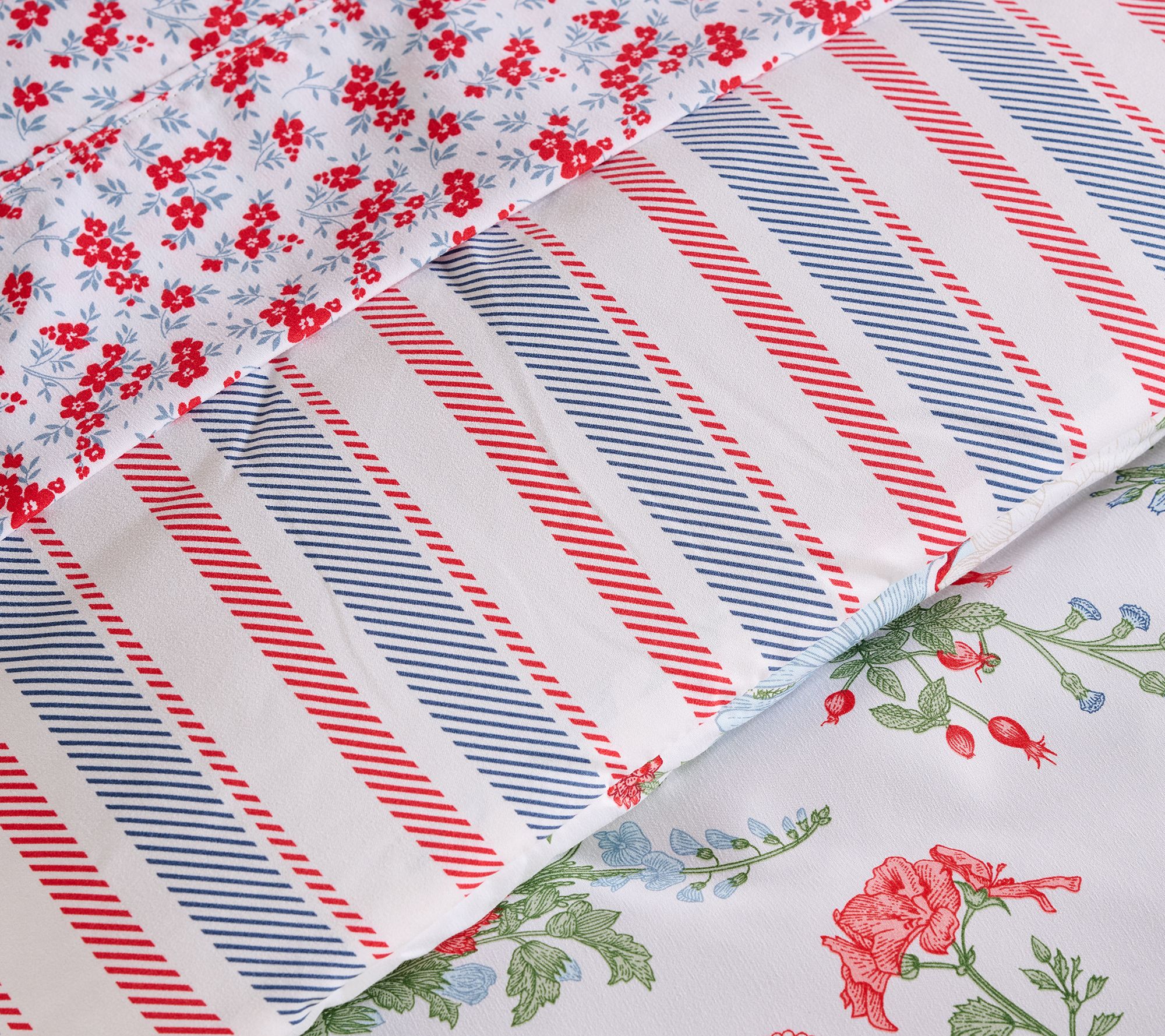 Set the stage for a patchwork of color and print with this Americana-inspired bedding set -- an ensemble designed to bring cozy charm and patriotic hues to your sleep space. Whether it's a cozy night in or a festive holiday weekend, enjoy the inviting feel of its soft embrace and striking pattern year-round. From Home Reflections®.