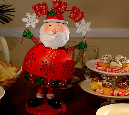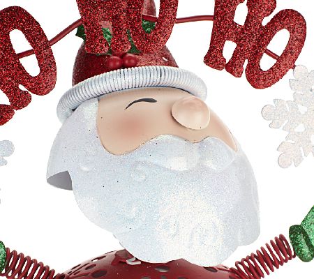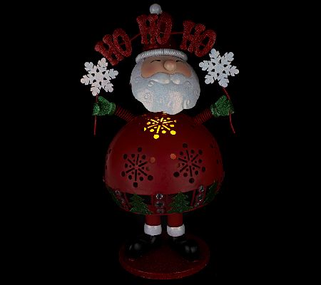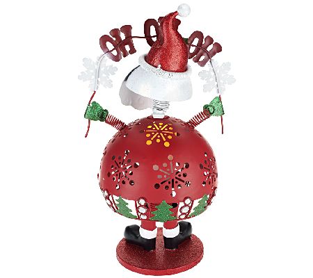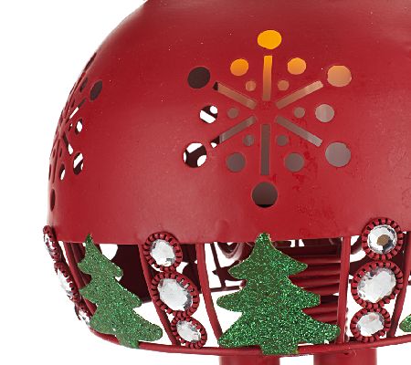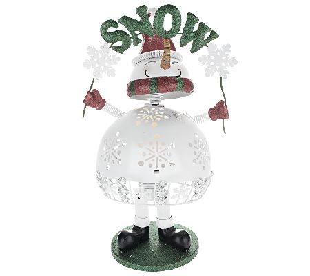 If you're ready to show off your holiday spirit, nod your head. Accented with glitter and simulated gems, this agreeable bobblehead character brings tidings for the season. LED candlelight shines through the cutout decorations on the body. From Home Reflections(R) Flameless Decor.