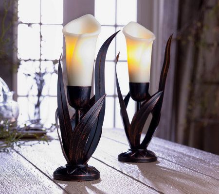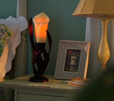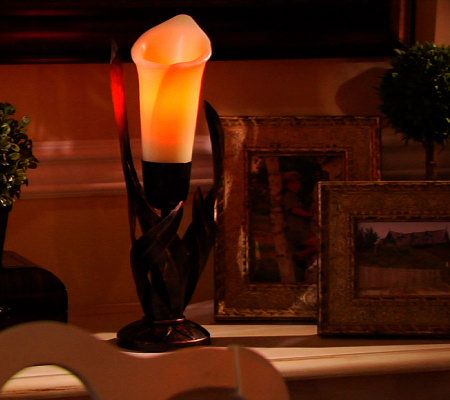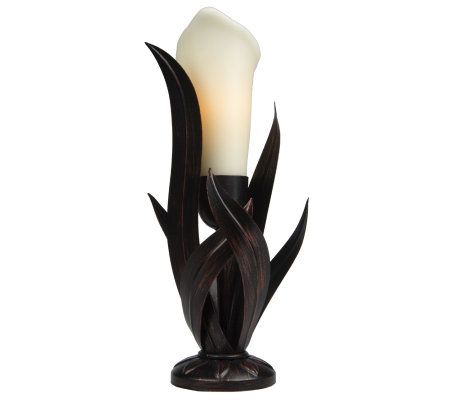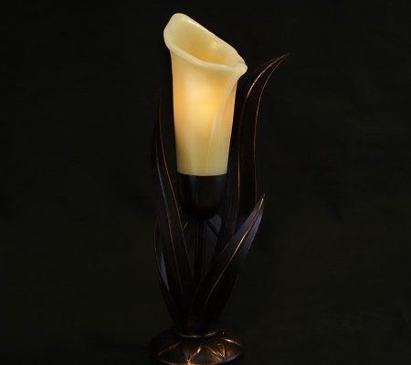 The elegance of a candle--without the worry. Just set the timer for four or eight hours, and behold the beauty of this flameless candle, which is crafted of sculpted wax to resemble a calla lily. The handcrafted metal candleholder accentuates the flower's natural feel, and is a perfect accent for any room. From Home Reflections(R) Flameless Decor.