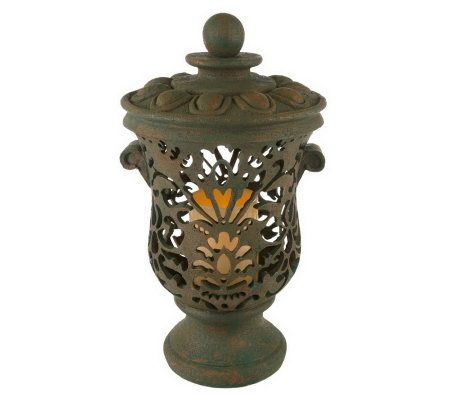 Embrace tradition. Add some classic flair to your indoor or outdoor space with this stately, handcrafted, urn-style candleholder. Set the timer so the integrated flameless candle glows for four or eight hours at the same time each day, or turn it on and off as you please. From Home Reflections(R) Flameless Decor.