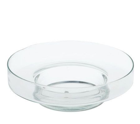 The center of attention. With this gorgeous handblown glass dish and flameless candle centerpiece decorating your mantel, dining room table, or hallway side table, it's best to be prepared for the compliments on your home decor. The ivory-colored flameless candle flickers realistically in the middle; the area surrounding the candle offers plenty of room for stones, potpourri, or greenery to suit your tastes. From Home Reflections(R) Flameless Decor.