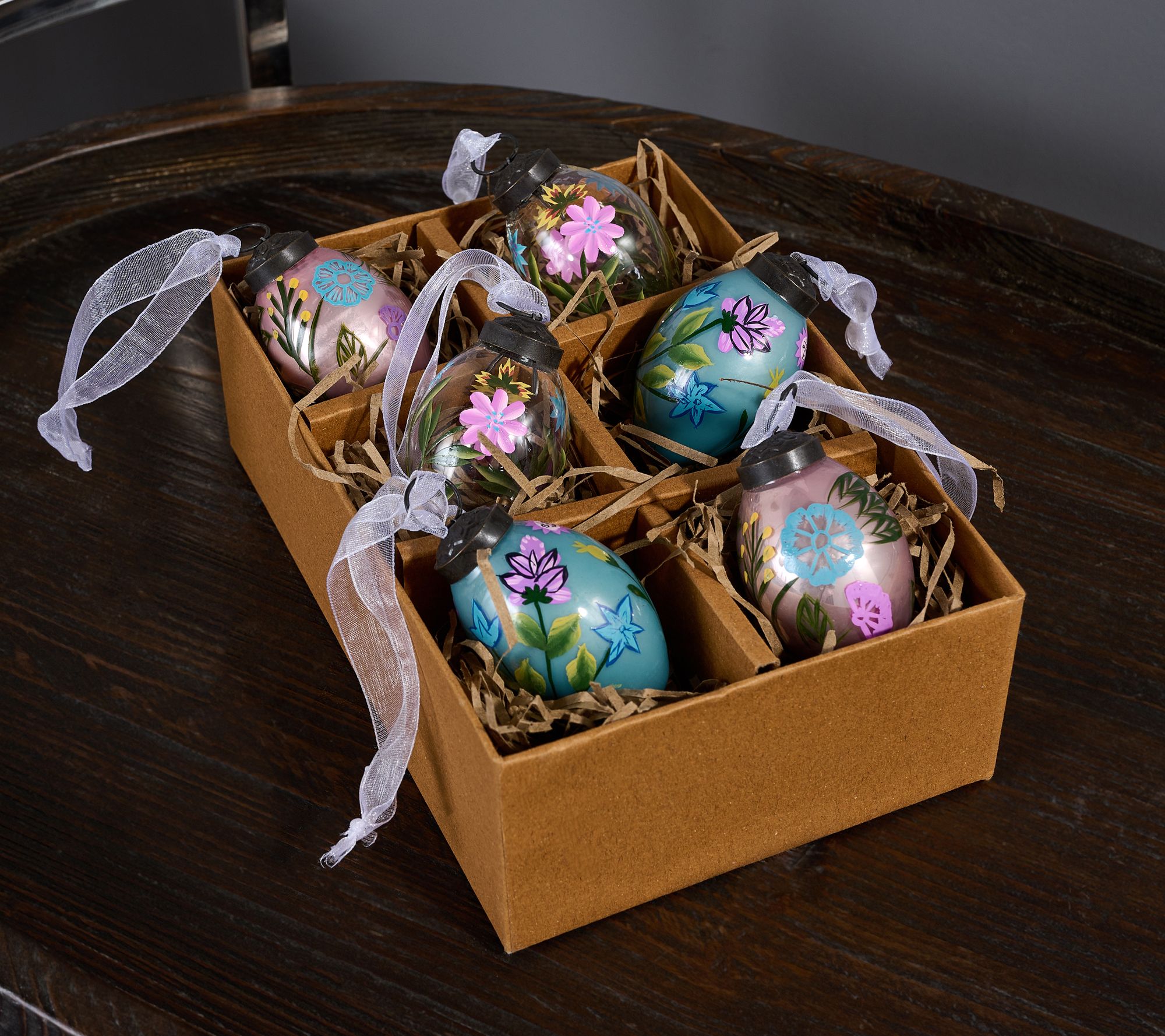 • Includes six mini glass egg ornaments and partitioned gift box