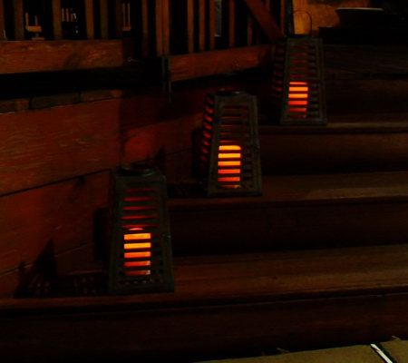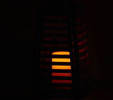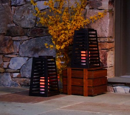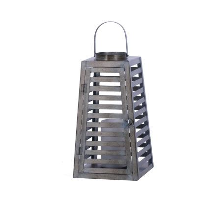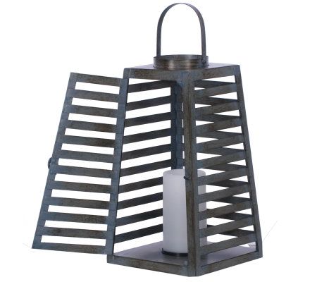Liven up--and light up--your living space with this gorgeous, slatted metal lantern. A wonderful accent indoors or out, it comes with a flameless LED candle that really shows off the distinctive cutouts. The handle lets you decide whether you want to hang it or place it on a table or mantel. From Home Reflections(R) Flameless Decor.