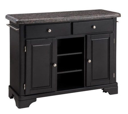 Designed with two hidden casters, this large cart easily rolls around the kitchen or into the dining room, and then locks in place. Its salmon granite top provides a space for plates and bowls, while a drawer and two doors store other essentials. Towel bars on each side are ideal for convenient cleanups. From Home Styles Furnishings.
