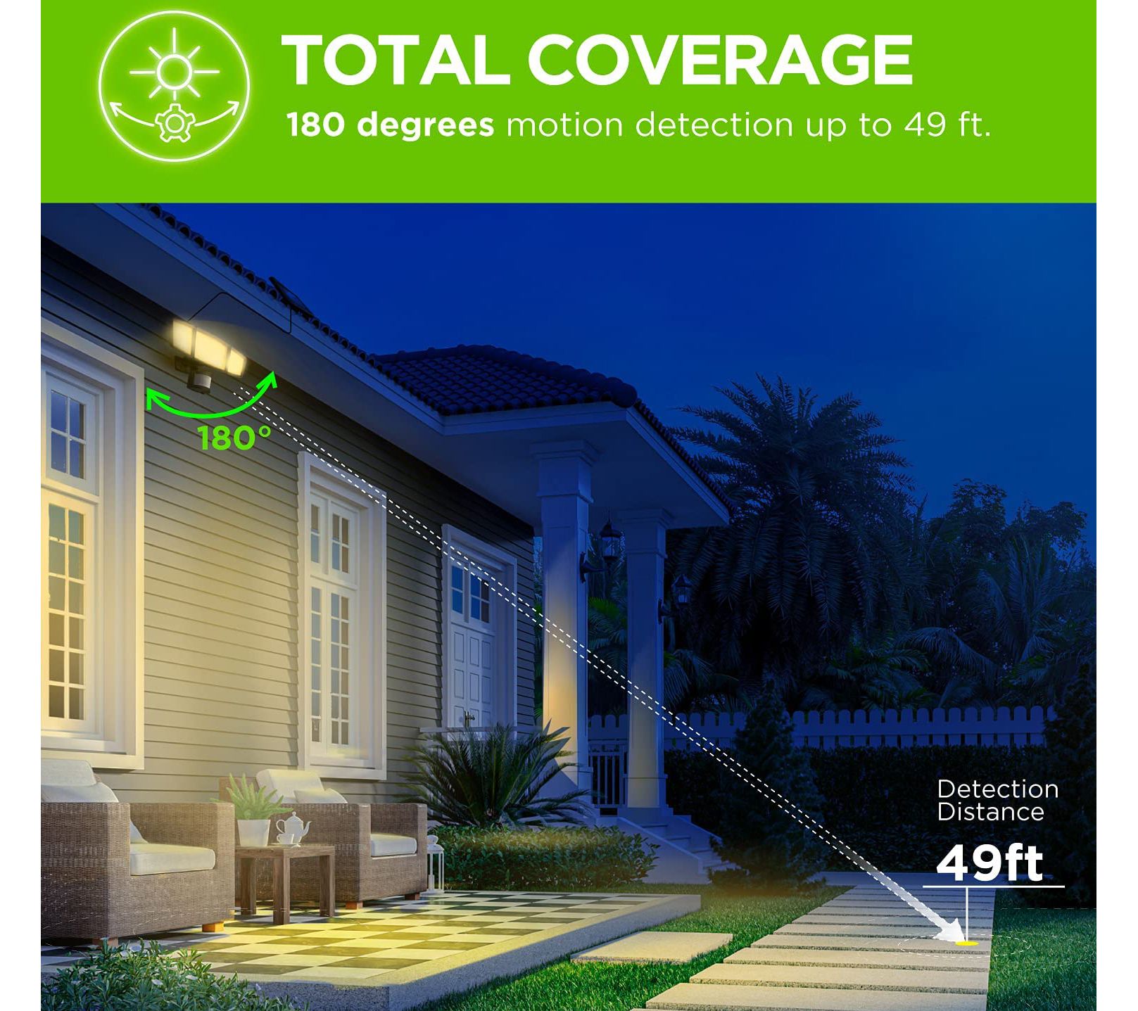 • 180-degree motion sensor with adjustable sensitivity