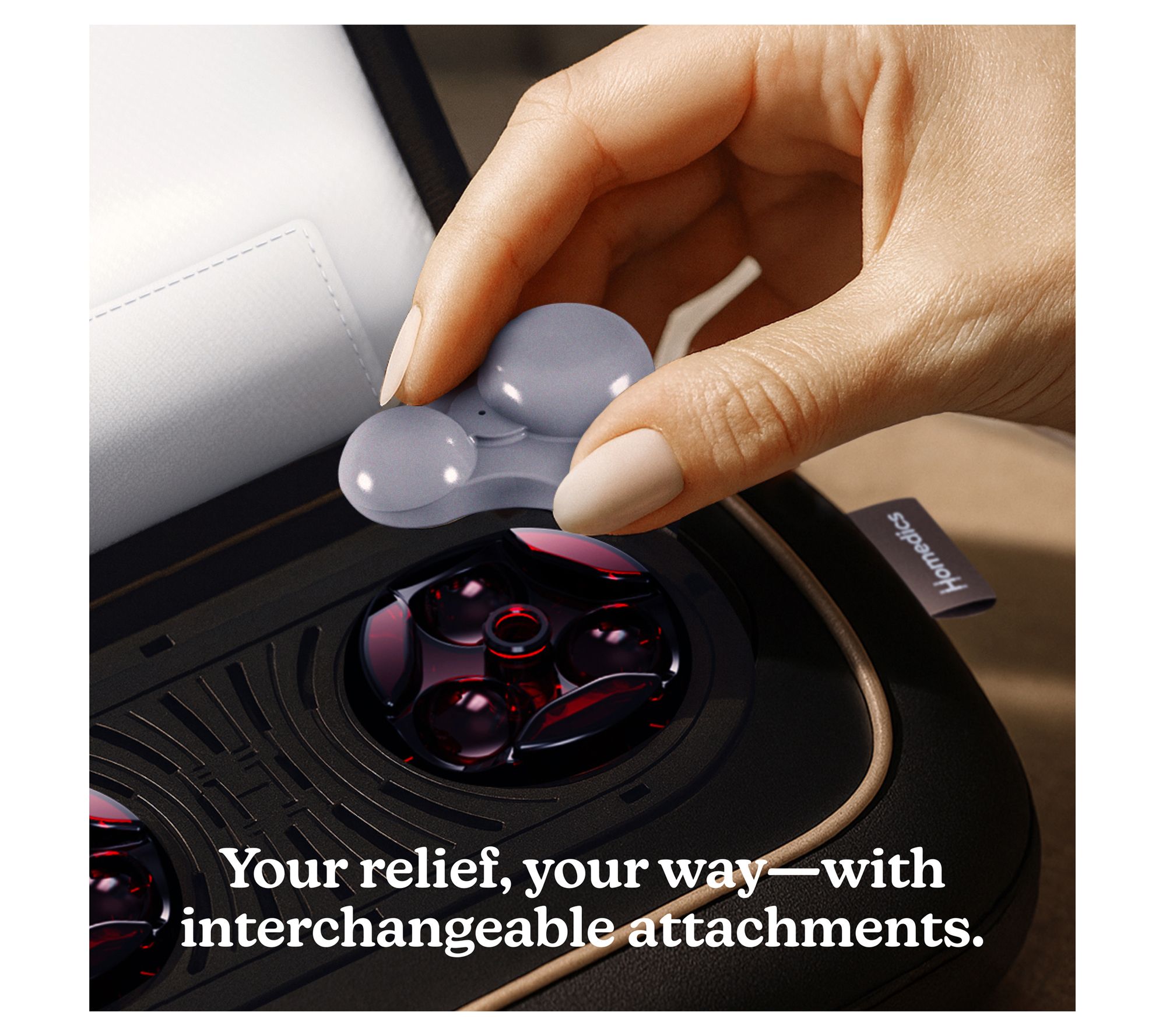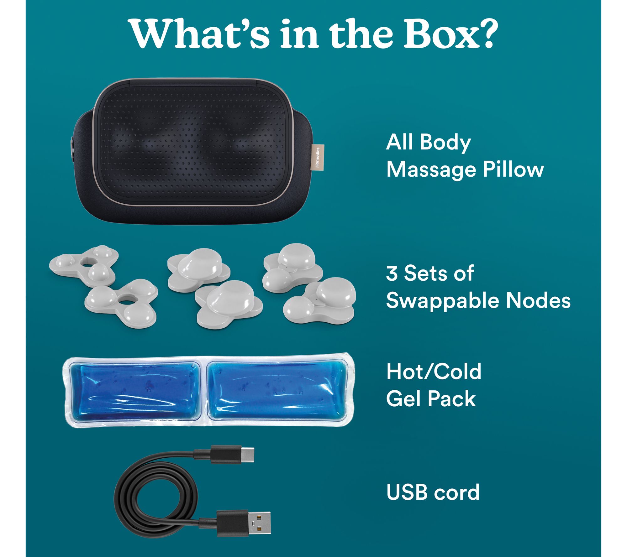 • Includes massager, three interchangeable massage nodes, and charging cord