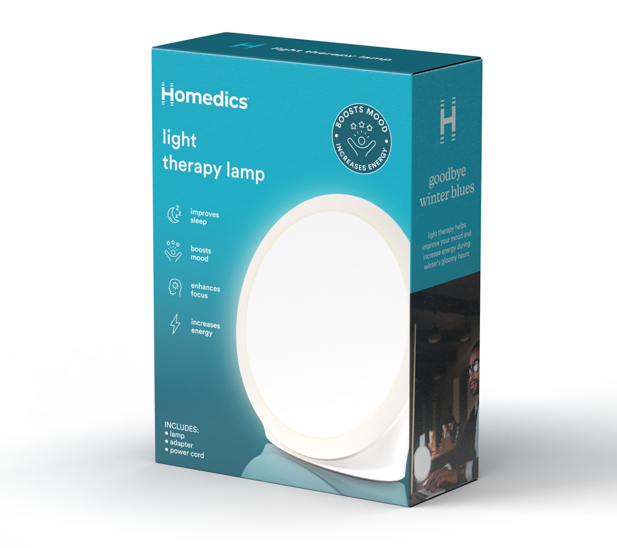 Brighten your day with the HoMedics Desktop Daylight Seasonal Therapy SAD Lamp. Ideal for your bedroom or workspace, this lamp helps enhance your mood, focus, and energy levels. With an ultra-slim design, it's a stylish and practical addition to any small space. From HoMedics.
