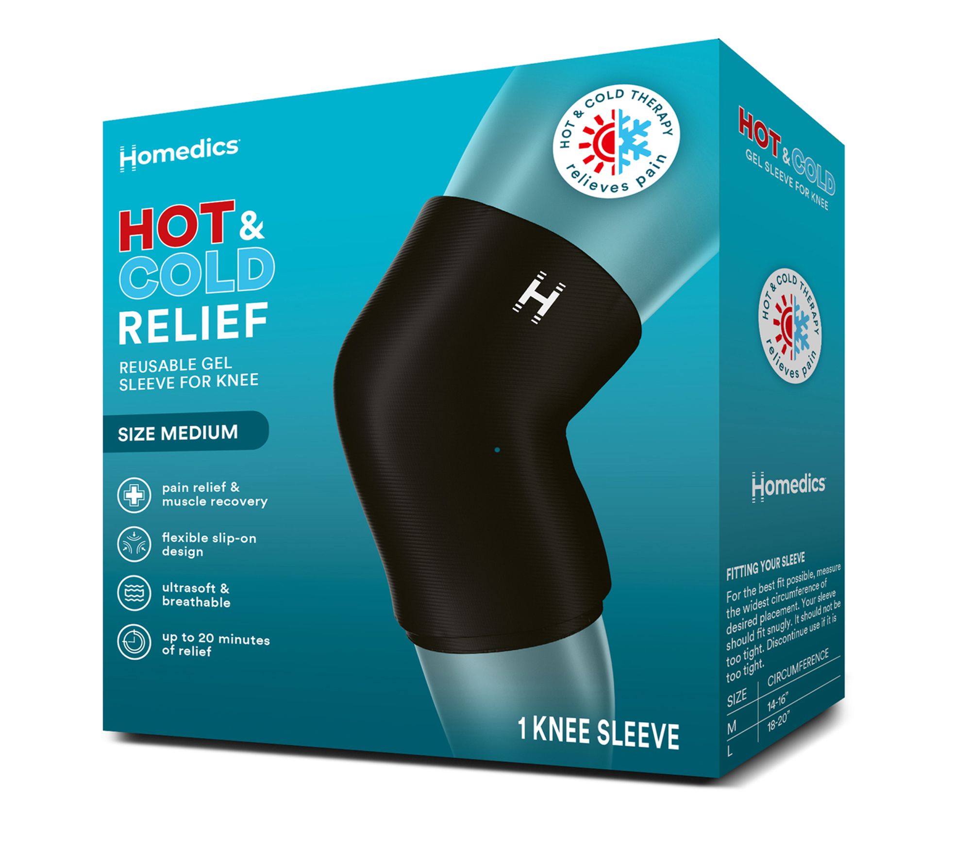 Help ease tension in your leg and knee with Homedics hot & cold gel sleeves designed for ultimate comfort and relief. Store in the freezer for a quick cool down or microwave for soothing heat to provide comfort to tired knees. The 360-degree compression ensures complete coverage for day-to-day pain relief, making it a versatile addition to your relaxation routine. From Homedics.