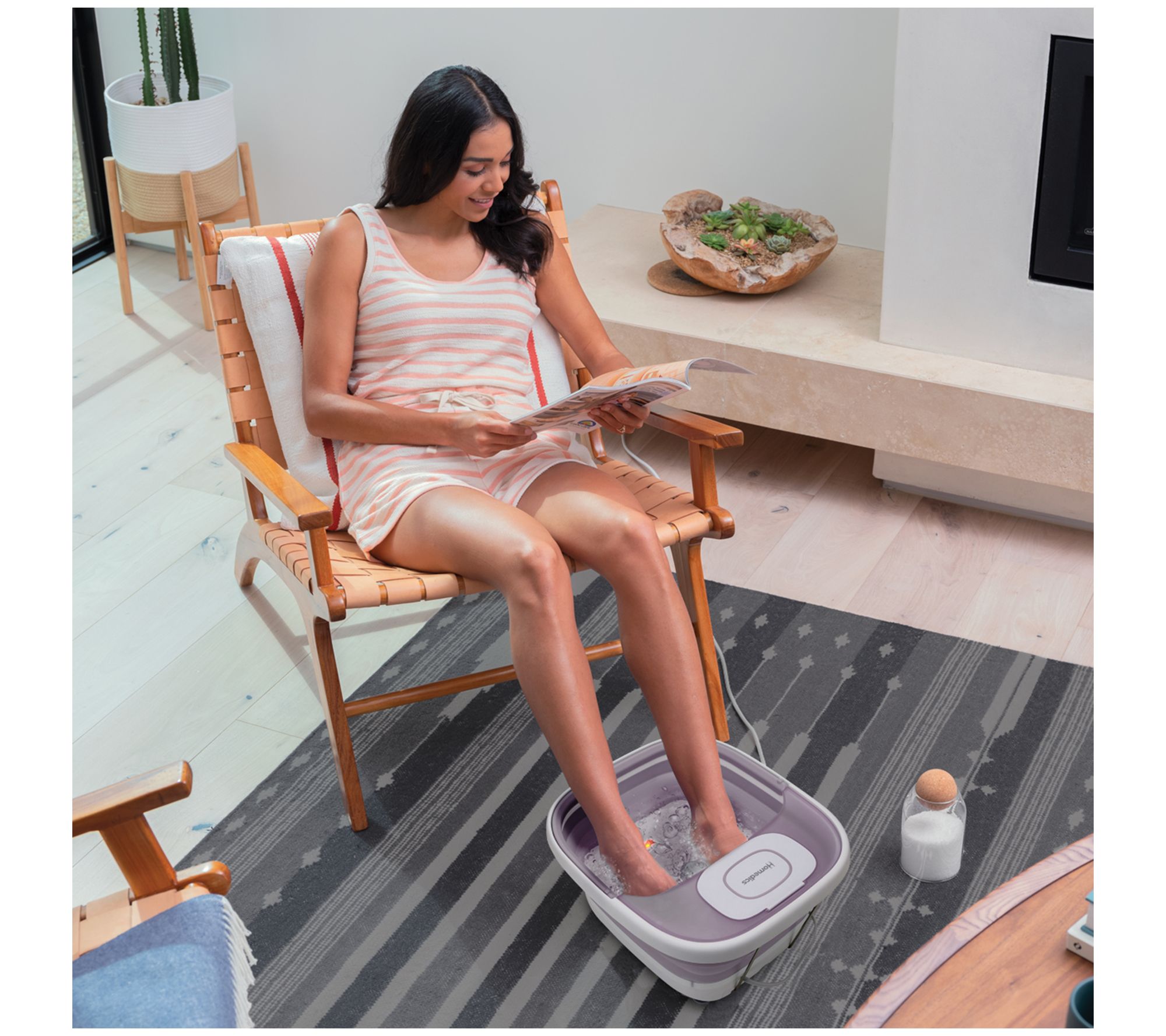 Relax and refresh with this fold-down footbath that delivers invigorating bubbles, three pedicure attachments, and soothing heat for the ultimate spa experience. From HoMedics.
