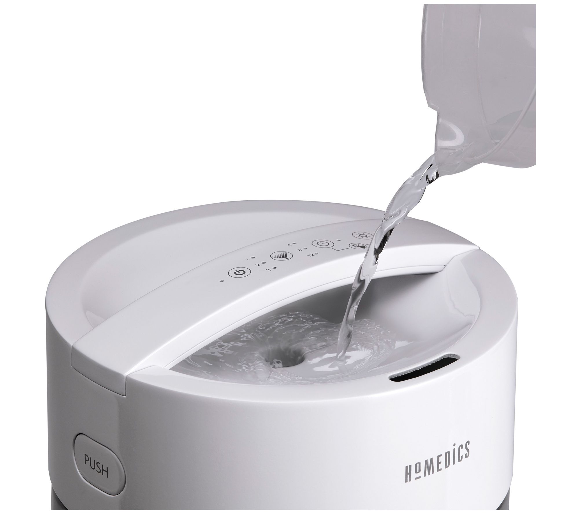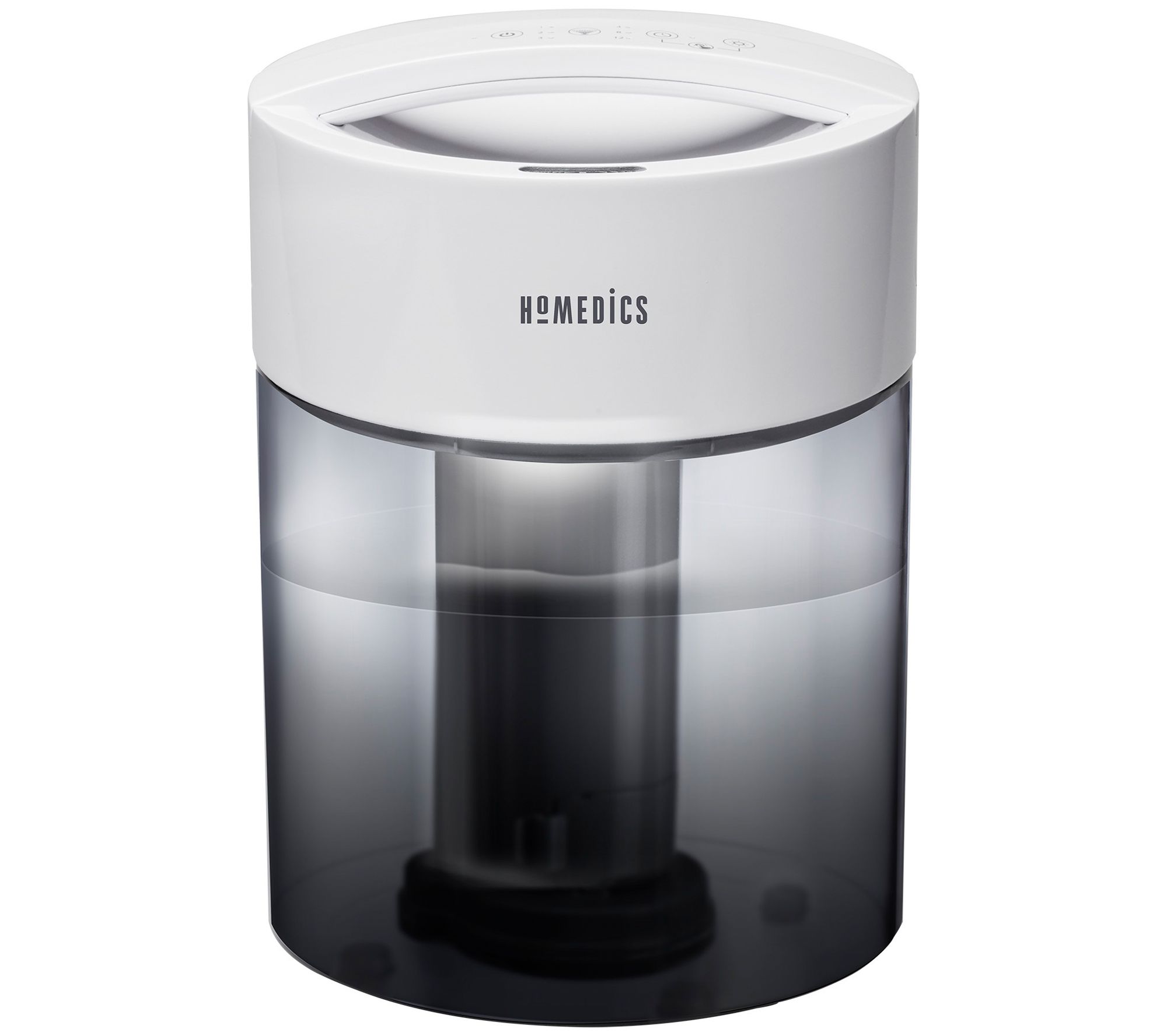 Clear the air in large rooms with an ultrasonic cool mist you can see. This humidifier features a 45-hour runtime with automatic shutoff aft er 12 hours. Clean Tank Technology helps prevent mold and mildew in th e 1.0-gallon top-fill tank. Enhance the air by adding your favorite es sential oil to the essential oil tray and create ambiance with the bui lt-in night-light. From Homedics. Includes 1 Ultrasonic Cool Mist Humi difier 1-Essential oil tray with 3 pads included. Visible ultrasonic c ool mist. 3.7L tank with handle 3 mist settings 45-hour runtime Night-