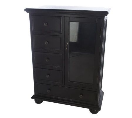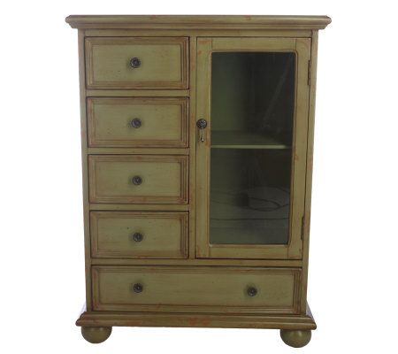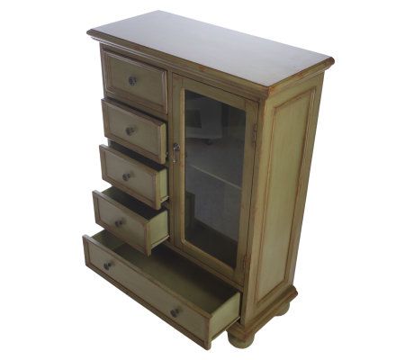 Display this adorable curio cabinet in your dining room, front entrace, or even in a child's room. The antiqued finish provides a sweet, rustic touch, while the curio cabinet and five drawers make this a lovely way to store dinnerware, silverware, or collectibles. From Home Reflections(TM) Decor.