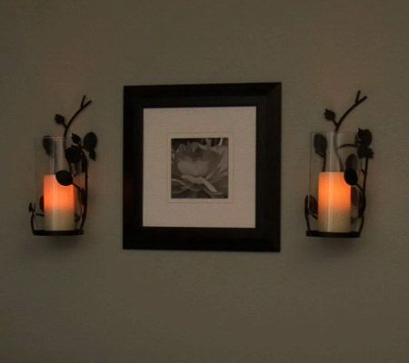• Includes sconce and ivory flameless pillar candle