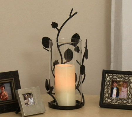 Give your home a warm, inviting touch with this cypress wall sconce. The handcrafted filigree ironwork is silhouetted by delicate leafy vines and completed in a sophisticated black finish. A flameless pillar candle casts a subtle glow to the lovely accent. From Home Reflections(R) Flameless Decor.