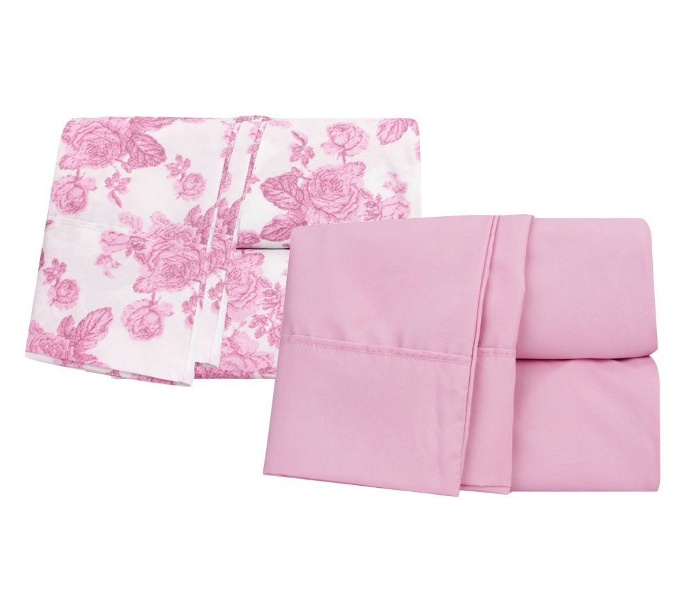 • Includes solid sheet set with flat sheet, fitted sheet, and two pillowcases; and floral sheet set with flat sheet, fitted sheet, and two pillowcases