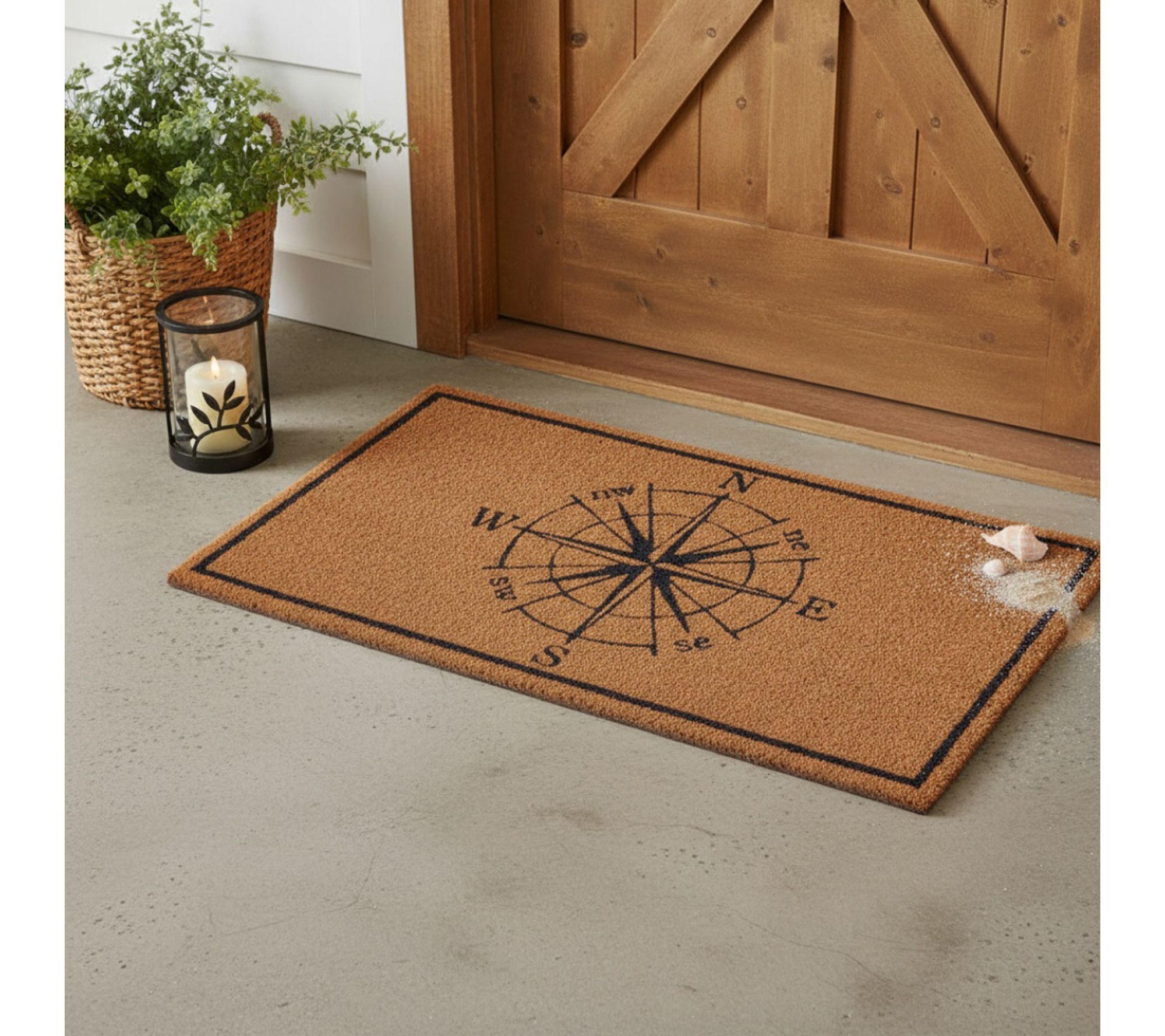Welcome family, friends, and guests with the inviting style of this compass coir door mat. Built to endure heavy foot traffic, its naturally bristled texture efficiently clears dirt and mud from shoes, making it a functional accent for any entryway. From HomeRoots.