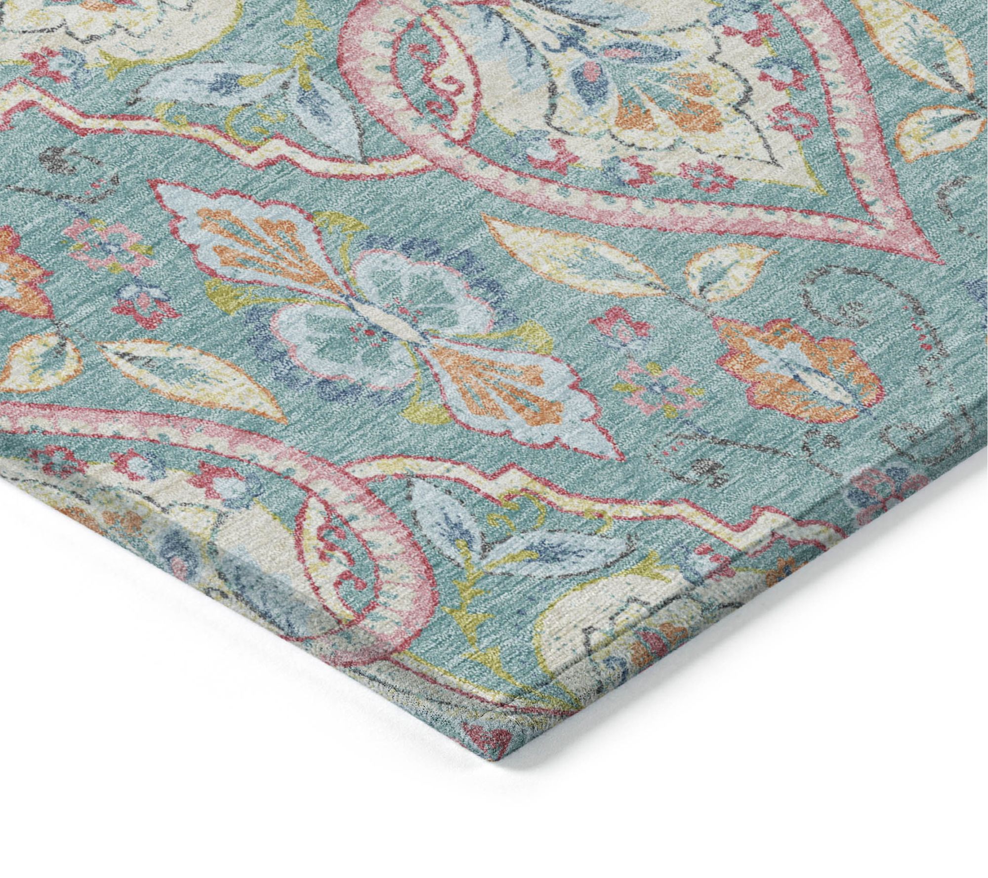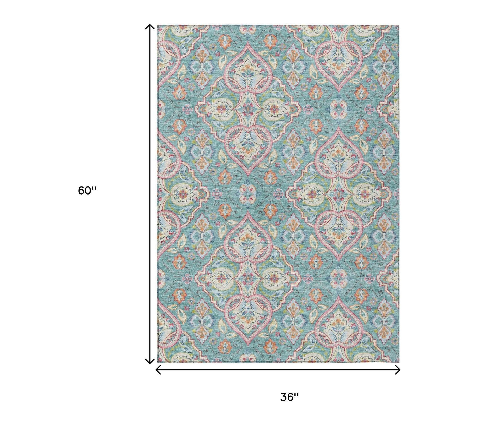 HomeRoots 3' X 5' Teal Blue Pink And Orange Ogee Washable Rug